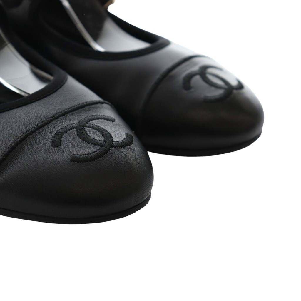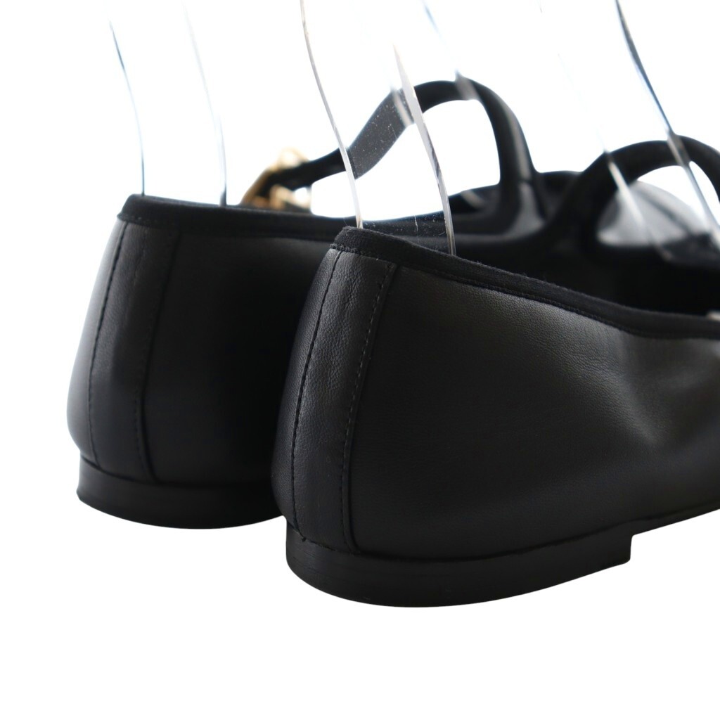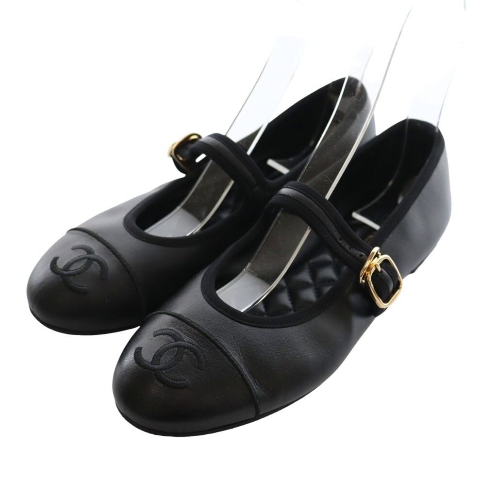 シャネル CHANEL メリージェーン フラットシューズ パンプス ラムスキン ココマーク 37 24.0cm 黒 ブラック G45503 /AQ ■OS