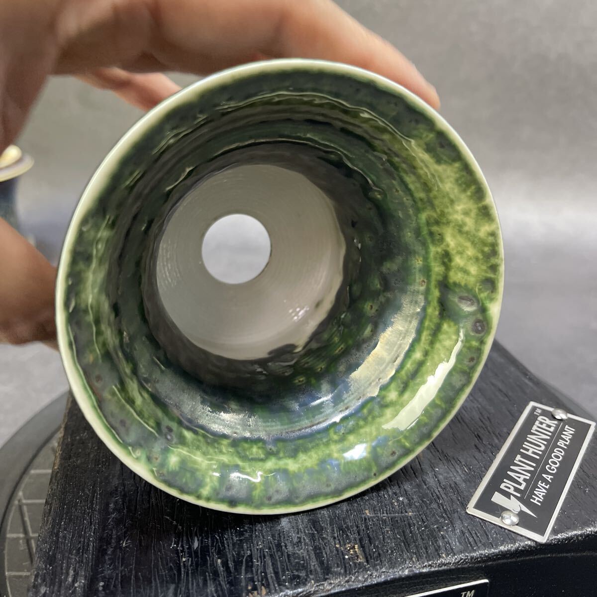 上部の乳白釉が柔らかく流れ、中央の灰藍釉は金属のような光を帯び、