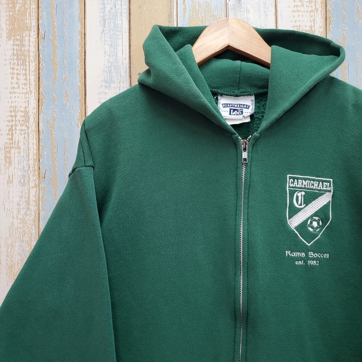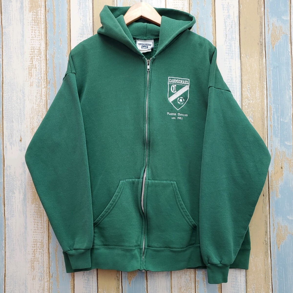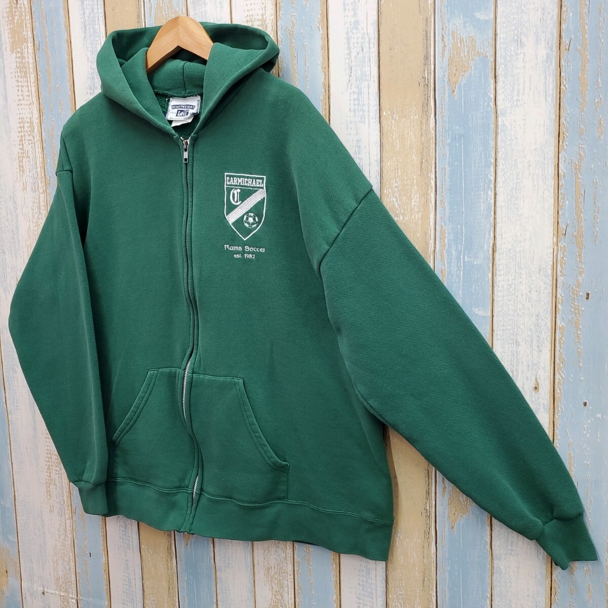 HA23☆リー☆ジップアップパーカー☆チームロゴ刺繍☆サッカー☆90s☆緑☆XL