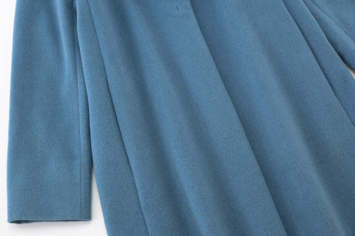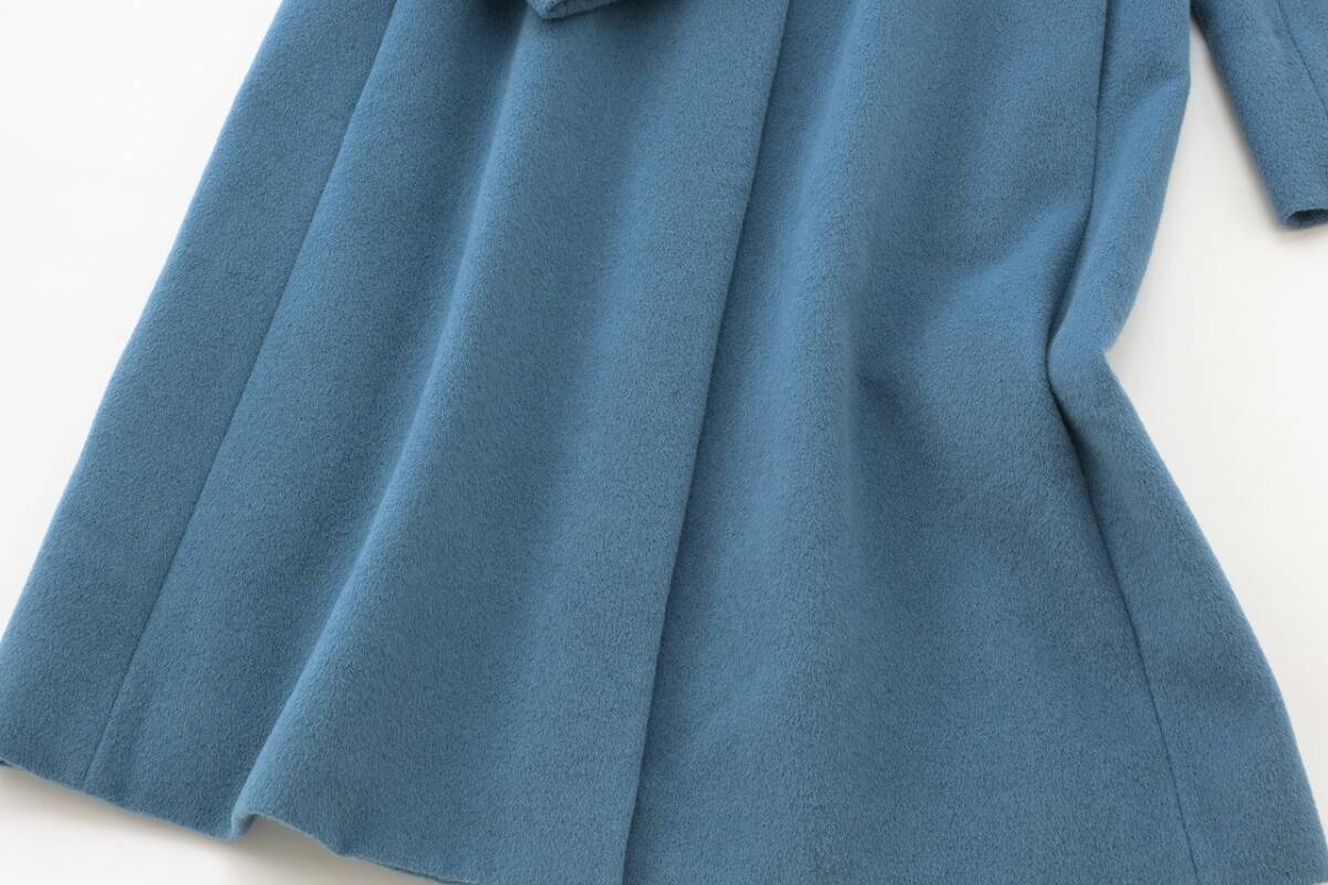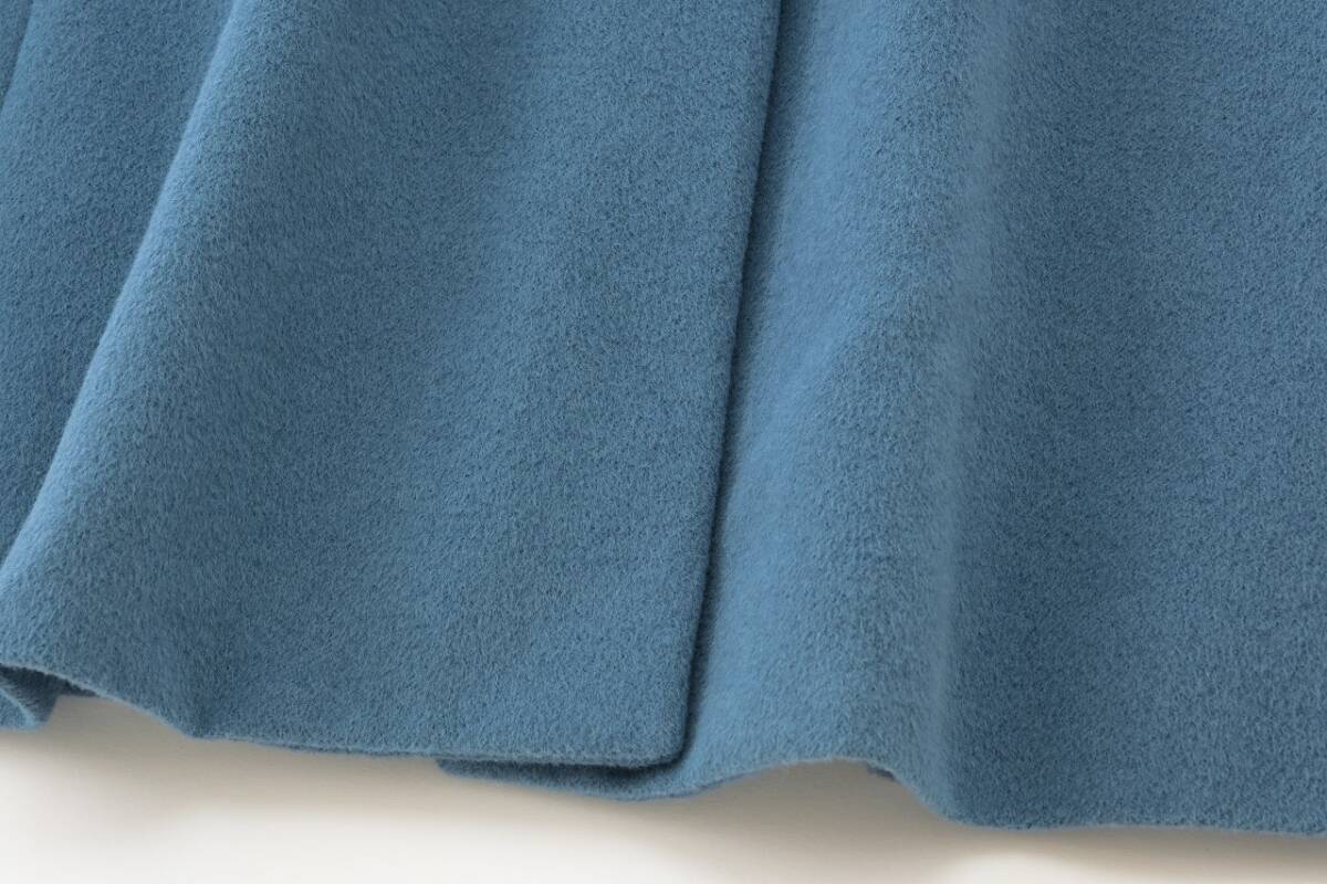 ブルーグレーカラーが柔らかく洗練された印象を与え、優しい手触りのアンゴラ混素材が温もりのある着心地を叶えます。