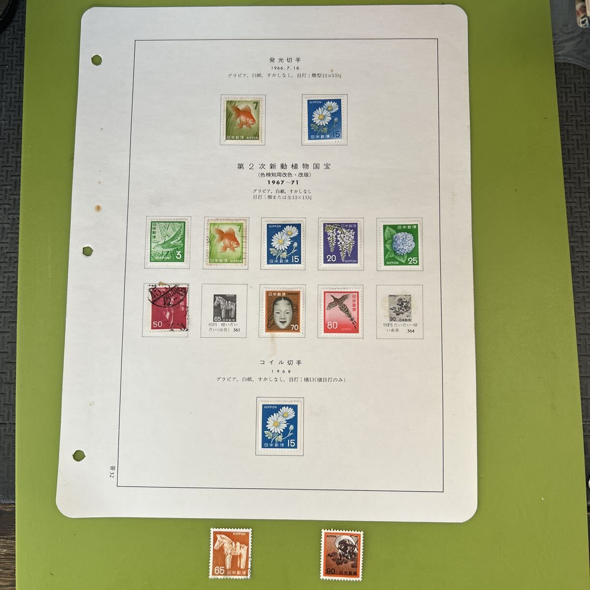 切手のコレクション用の台紙です。途中まで切手が貼られていた物の残りを集めてコンプリートした物ですが似たような切手がいくつかあるため完全に図面と一致しているかは分かりませんがご了承いただける方お願いします。未使用が10枚あります。古いもので自宅保管の為汚れや色褪せありますが気にならない方お願いします。