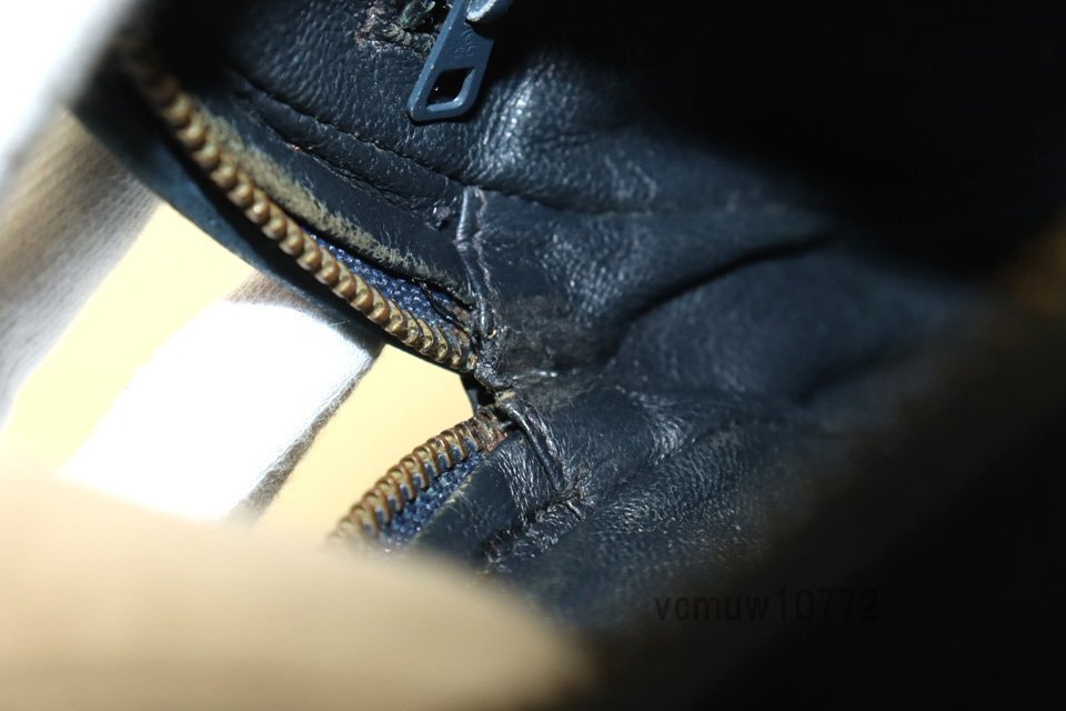 中古ですので新品と比較してすれ、小傷、色むら、若干の型崩れ、使用に問題ないレベルの糸ほつれ、金具にくすみ等ございますが写真の通りコンディション良好です。