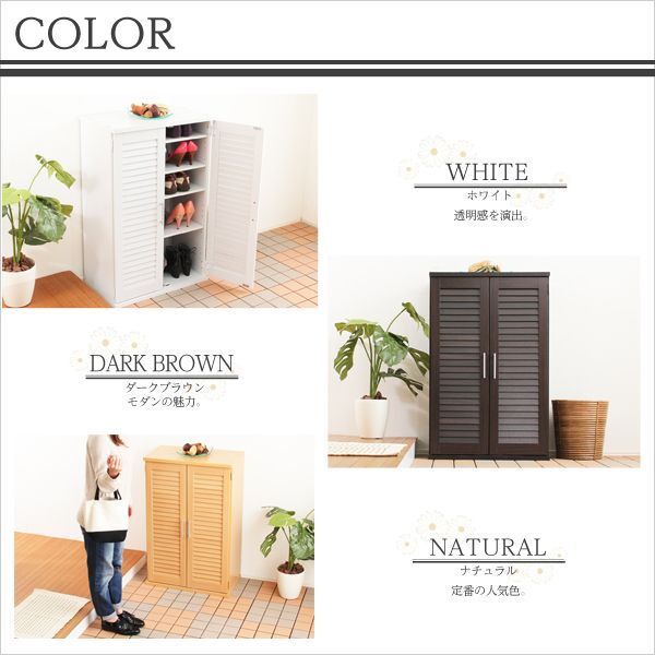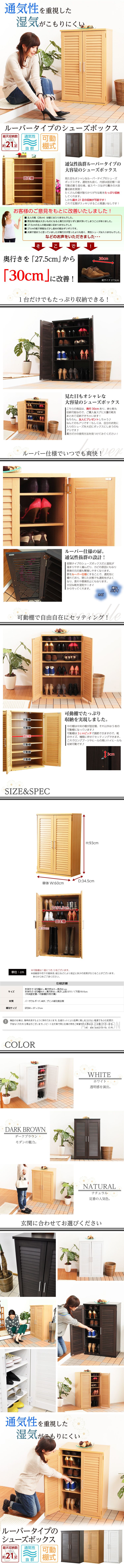 【ポイント】 ①省スペースながら驚きの大容量収納を実現しました。 ②たくさんの棚が散らかりがちな靴をたっぷり収納します。 ③ルーバー仕様で通気性抜群です。 ④カラーは選べる3色展開! |