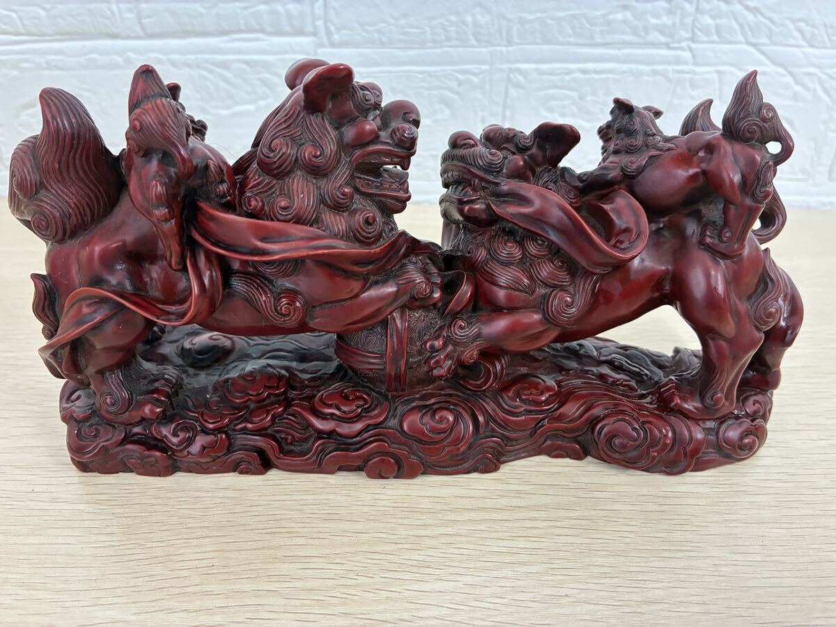獅子魔除け 縁起置物 守神 民芸品 開運 彫刻 インテリア 中国美術 P-06