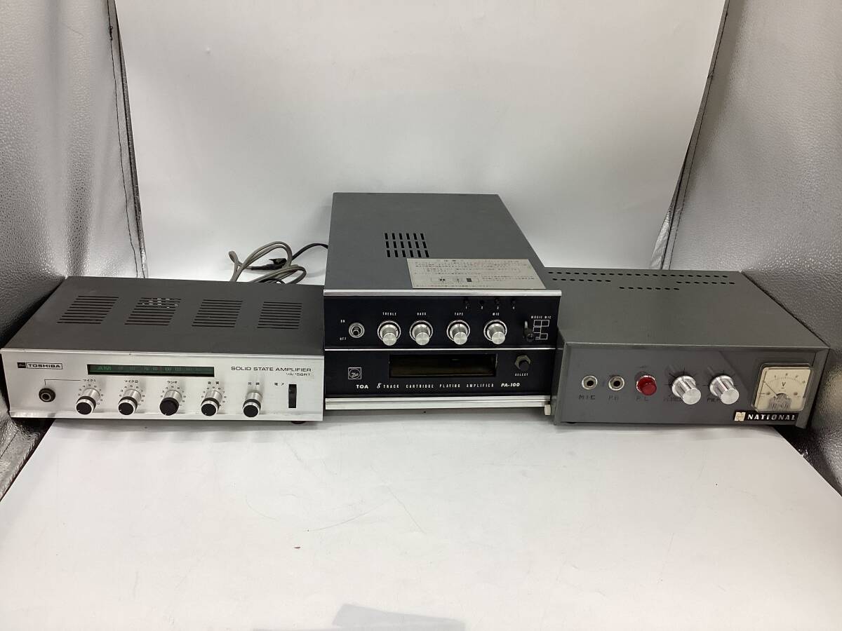 【8395D】アンプ 3点 まとめ TOA PA-100 プレイアンプ TOSHIBA VA -156RT 東芝 トランジスタアンプ National 型番不明 動作未確認 ジャンク