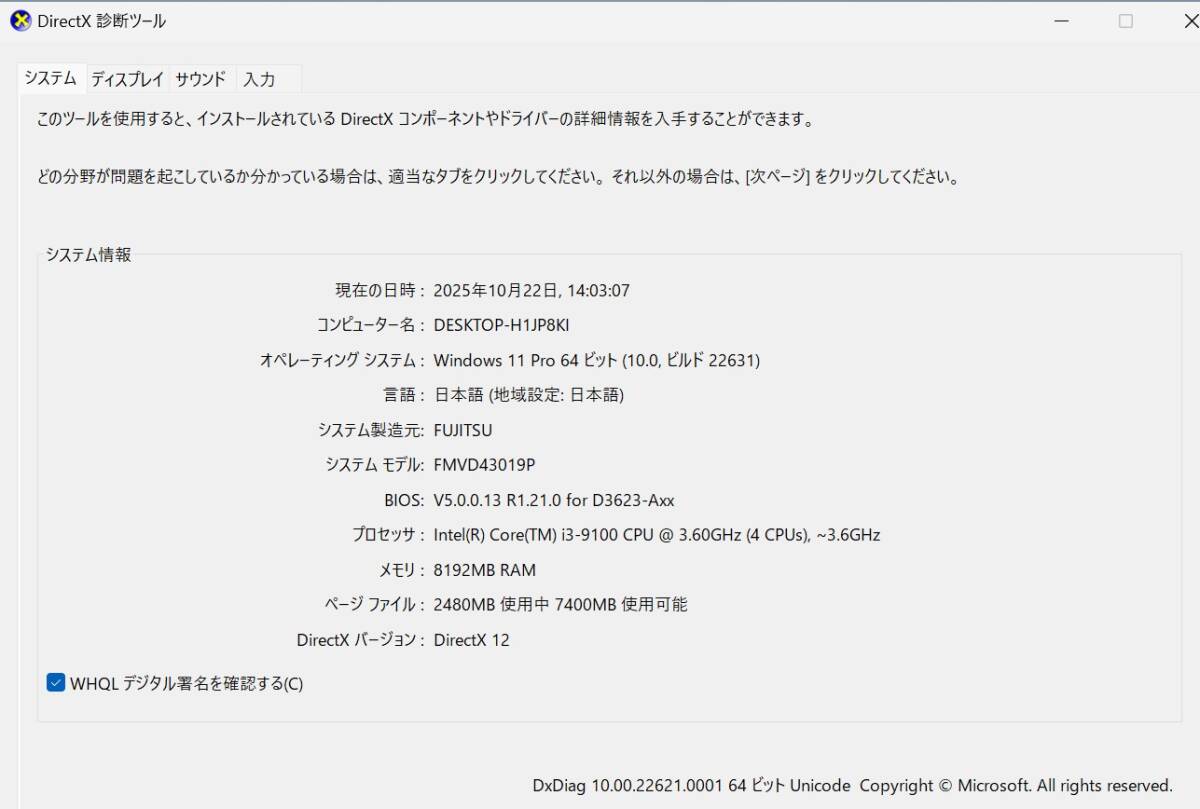 | OS | Windows 11 Pro (ライセンス認証済) |