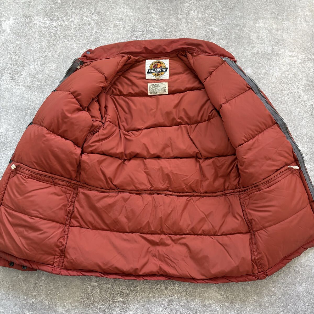 細部に宿るこの存在感が、当時のプロダクトへの誇りを物語ります。中綿はふっくらとしたダウン。保温性は抜群で、街でも山でも確かな安心感を与えてくれます。