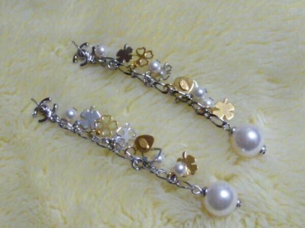 ☆送料無料☆CHANEL シャネル COCO&パール&クローバー&ハートチャーム ピアス(USED)