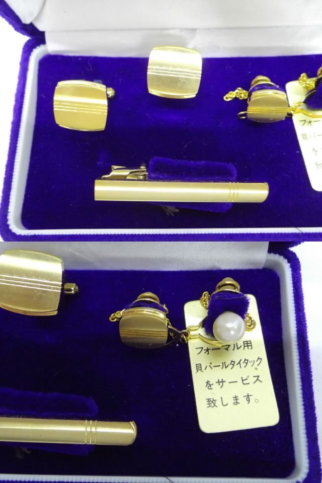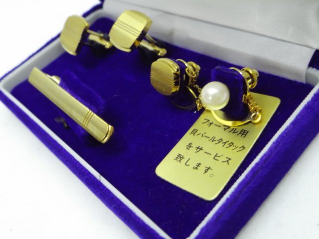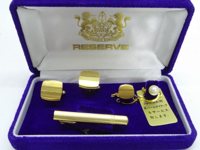 BROOKE BOND RESERVE★タイピン&カフスセット/ゴールド/金属素材/パール【中古】K240811TK-15