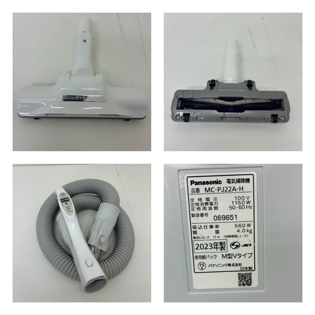 中古品 Panasonic MC-PJ22A-H 動作確認・簡易清掃済み 2023年製 パナソニック 床移動式 キャニスター掃除機 紙パック式【AJ-0770】