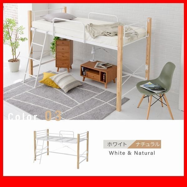 温かみのある天然木とクールなスチールのコントラストがおしゃれな、ちょっと低めのロフトベッドです。 高すぎないのでどんなお部屋にもおすすめできます。 ベッドの下のスペースは収納に使っても、ロースタイルな生活の一部にしても。 お部屋の雰囲気にあわせて4カラー展開が嬉しい! |