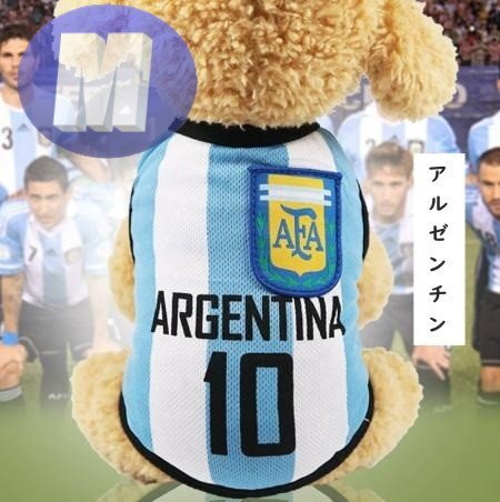 ドッグウェア 春夏 アルゼンチン Mサイズ サッカー 代表 ユニフォーム 犬服 小型犬 袖なし 通気性 柔らか 洋服 可愛い