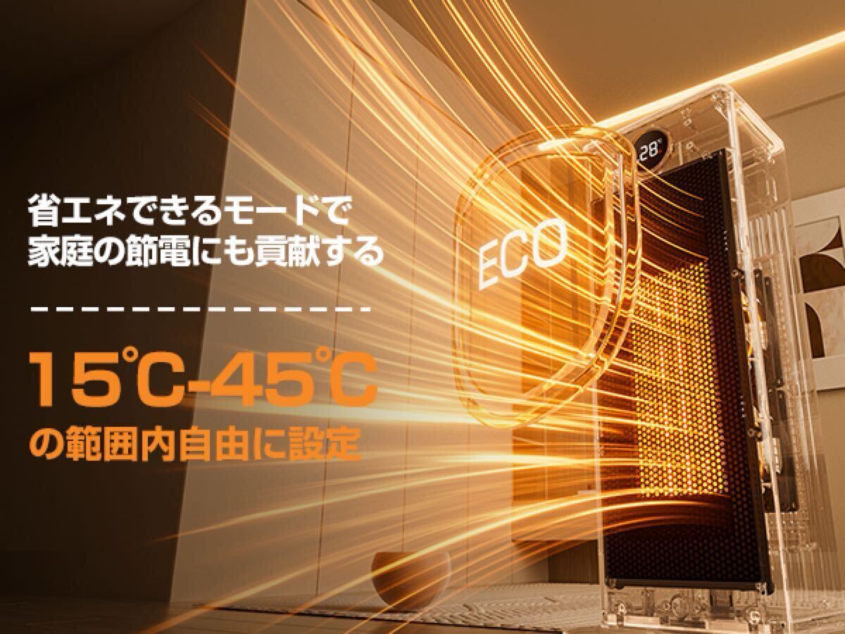 【四つモード・メモリー機能】エコ知能モードで、15℃~45℃まで1℃ずつ設定可能、好きな温度に応じて調整できる、省エネと快適な温度を両立させます。さらに、自然風モード(8W)、中温風(800W)、高温風(1500W)を選択でき、状況に合わせて自由に切り替え、さまざまなニーズに対応します。電気ファンヒーターの電源をオフにする時、ファンが引き続き運転「30秒送風散熱機能」、内部の熱量が冷却して事故を防ぎます。更に言えば、ファンヒーターにはメモリー機能も搭載、前回電源OFF時の設定した状態を保持し、無駄な繰り返し操作を省きます。