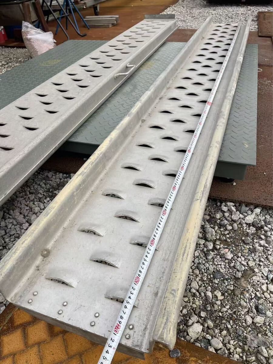 アルミ製の滑り止め付きブリッジ、車両の昇降に最適。
