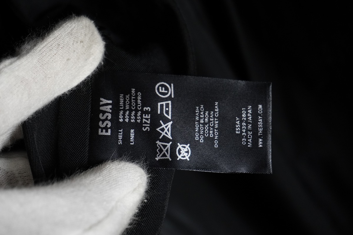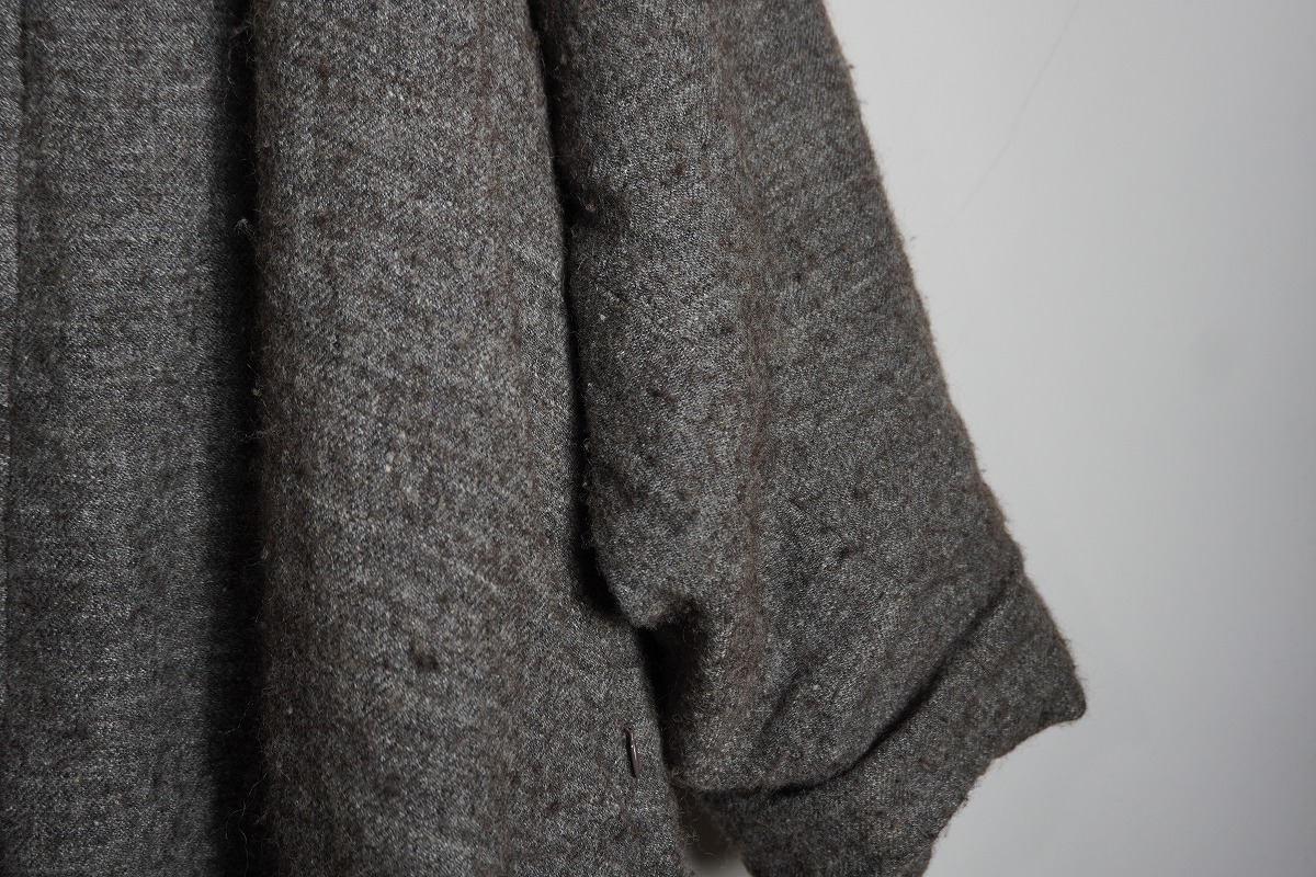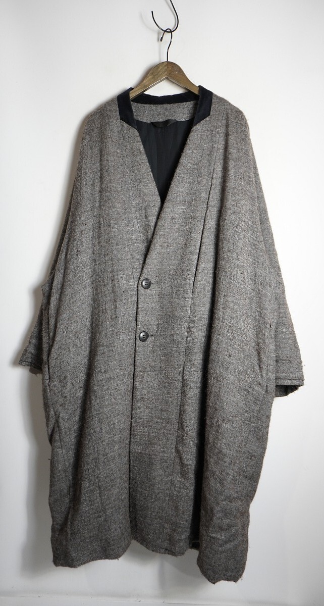 21AW ESSAY エッセイ COLLAR LESS COAT カラー レス ガウン ロング オーバー コート ウール リネン ES13C-02 Grey Brown 灰茶 サイズ3です。
