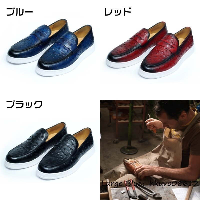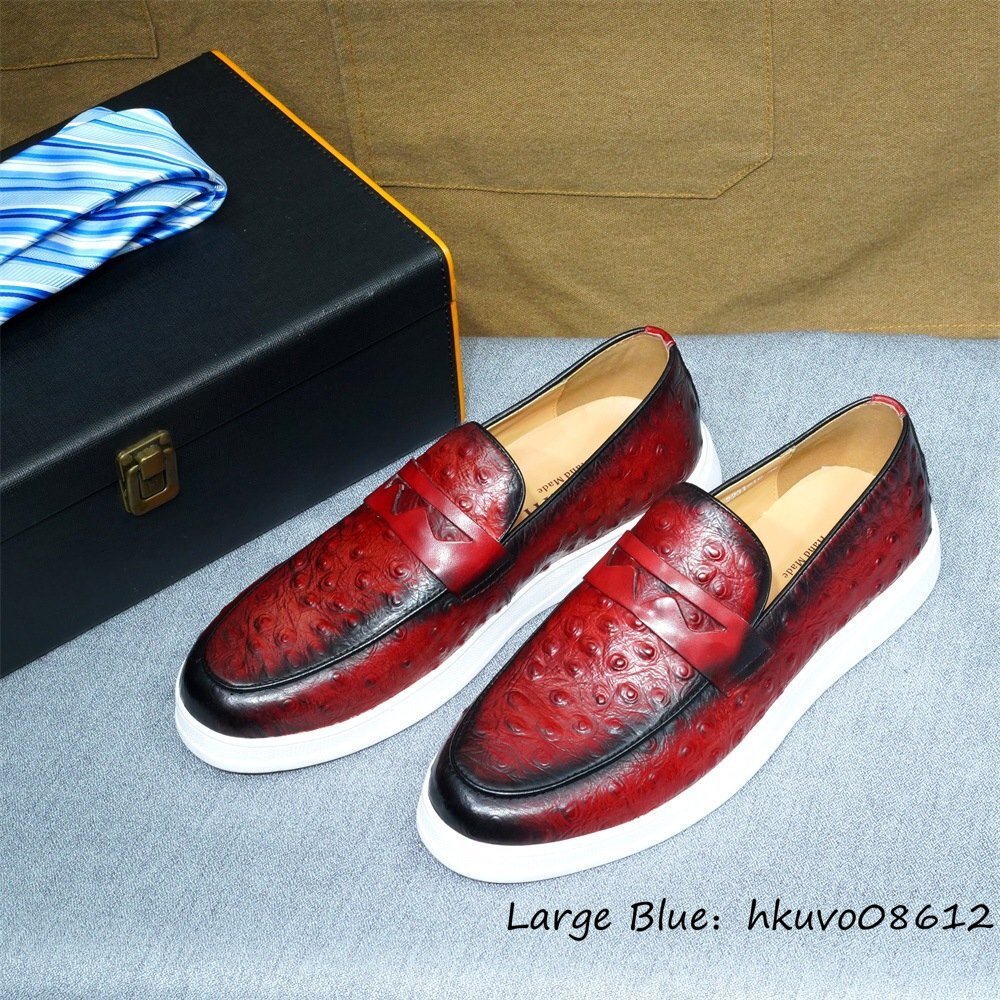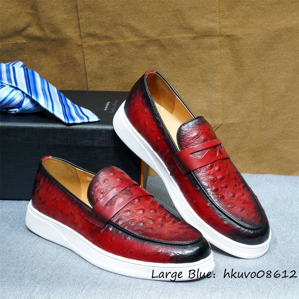 最高級◆定価8万超 スニーカー ビジネスシューズ メンズ 職人手作り ローファー スリッポン 本革レザーシューズ 紳士靴 牛革 レッド 24.5cm