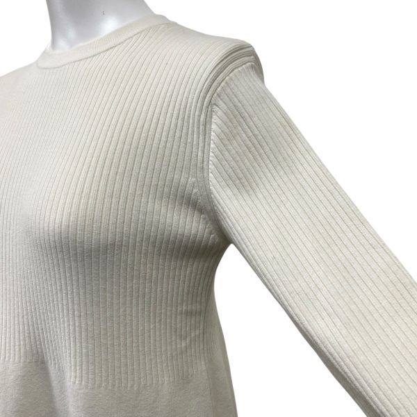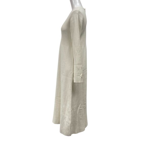 ニットワンピース ロング丈 長袖 クルーネック リブ編み フレア トップス
