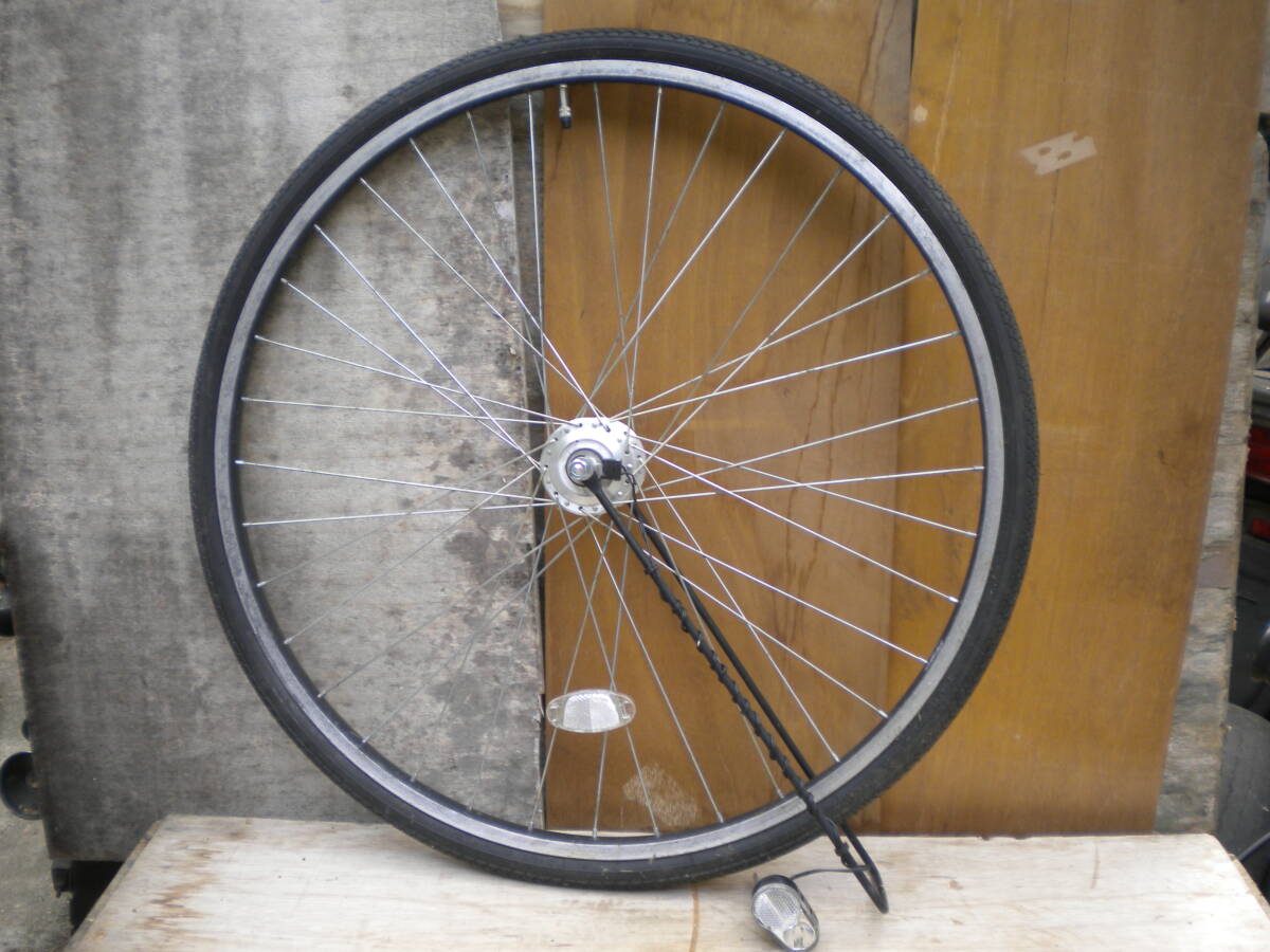 | ★商品説明★ | ★携帯からご覧の方及び発送料を聞く方がいらっしゃいますが送料等発送情報等下にありますので最後までよくお読み下さい。 ★評価の悪い方及び新規の方のご入札は1度質問コーナーよりご連絡下さい。 ご連絡の無い方のご入札はイタズラ・トラブル防止の為此方の判断で削除する場合がありますご了承下さい。 ★宅配便発送分及びゆうパックの場合必ずお読み下さい★ ※集荷・配達不可地域につきましては、予告無く変更となる可能性がございます。 お急ぎの方、遅延にご理解いただけない方は入札ご遠慮ください。ご落札の方には、 状況が判明次第ご連絡をさせていただきます。 大変ご迷惑をお掛けいたしますが、ご了承の程よろしくお願い申し上げます。 ★バイクや自転車・車の部品は消耗品です。完全クレーム対応致しません。保証等お考えの方はお店で整備された物を ご購入下さい。現状販売です。(現状販売の意味の判らない方はご遠慮下さい。) ★商品の詳細は文字では説明出来ない部分が有ります。ごくまれに、説明文に無い等アゲアシ取りをされる方 や神経質な方は、ご遠慮下さい。ご入札は良くお考えの上宜しくお願い致します。 ★時々多数本ご入用で同梱はと聞かれますが同一のホイール2本同梱でギリギリ160サイズで大丈夫ですが キズや絡まり等ご理解・ご了承頂ければご対応致します。 リアとフロント等異形の同梱は170サイズ以上になり ゆうパック・宅配便着払いのみの発送になります。料金は後日お知らせ致します。 その他ホイールや数本は梱包してみないと判りません。 ご理解・ご了承下さい。 ★動作確認済み。ホイールはアルミです。 ★ライト切れの無いLEDライトです。 ★カゴの下に取り付けるタイプです。 ★ライト・ライトスティー・ホイールのセットです。 ★27×1 3/8。 ★ロックナット(エンド)幅:100mm。実寸ですので、若干の誤差はご了承ください。 ★ライト:Hapyson YRS251。焼け・くもり・キズ・シミ・メッキ剥がれ有り。 ★ダイナモ:Hapyson YRH001。スポークサビ有り。キズ・サビ有り。 ★ホイール:キズ・サビ有り。 ★ネジ類:サビ有りますのでおまけとお考え下さい。要らない方は落札の際お申し付け下さい、外してお送り致します。 ★タイヤ:山5分程度ですのですぐに交換する事も無いと思いますが早めの交換をお薦めします。(個人的見解) (サイドひび割れ有ります) 一部凹んで見えますが空気が入っていなかったみたいです。パンクはしていません。 ★取り付けのコツは締めすぎず緩すぎず車輪が違和感無く回る様に取り付ければ大丈夫です。 ゴリゴリ音があれば締め過ぎです、その時はライト点灯しません。 ★締めるコツですがナットに負荷がかかりきつくなった時1回又は2回程クッかクックッとご自身が負荷がかかる状態が だいたい10kg前後ぐらいの最良な締め付け具合です。 これを覚えると家電・タイヤ交換等回して締める物は大抵大丈夫です。(全般に保証している物では有りません) ★自転車・車バイクの様に不安が有る物は外れたら怖いと過剰に力が入り結構きつく締める場合が 心の中で知らず知らず生まれます。お気を付け下さい。 ★一番判る判断テストは上下逆さま(反対にして)で車輪を指で軽く回します。 その時ゴリゴリに締めますとカックンカックン・1マスメ~2マスメ間隔等に カカクンカカクンと車輪の負荷がかかり上手く回らない車輪が止まる状態が締めすぎです。 早く・強く回すと判りづらいです。ユックリとお願いします。 ★正常は指で軽く回しますと普通に違和感無くスーット車輪が回ります。 その際明るい内はライトのセンサー部分の本体後に携帯のカメラ部分のような窓が有りますのでここを押さえ光を センサーに関知させないで行うと点きます。 ★結構敏感で精密な部分ですのでビニールテープの黒かガムテープ・黒の布等で塞がないと関知して明るい内は 点灯しません。夜であればそのままで点灯します。 ★大事な事ですがホイール(ダイナモ)とライトの線がちゃんと繋がっていなければ付きませんお気お付け下さい。 ★LED以外稀にライトの中にある銅版にライトが接触してなければ球を交換しても付きませんので銅版を軽く曲げて 球に接触するようにして下さい。球は消耗品ですので切れている時は交換して下さい。対応は致しません。 ★テストはスチールのフロントフォークでしておりますアルミ等特殊な物は点かない可能性が有りますので ネット・自転車屋さん・判る方に聞いた上でご入札お願い致します。その際安易に落札され点灯しない等 一切返品・返金等対応致しませんのでご了承頂いた方のみ宜しくお願い致します。 ★ライトが付けれるある程度の車体なら、ポン付けで坂・雨等気にせず夜になれば楽々にライト点灯出来る機能です。 ★全体に年相応のサビ・キズ有ります。 ★発送は記載されているのみです。他の発送は不可になります。梱包代を含んだ金額になりますので、 ご理解頂いた方のみご入札下