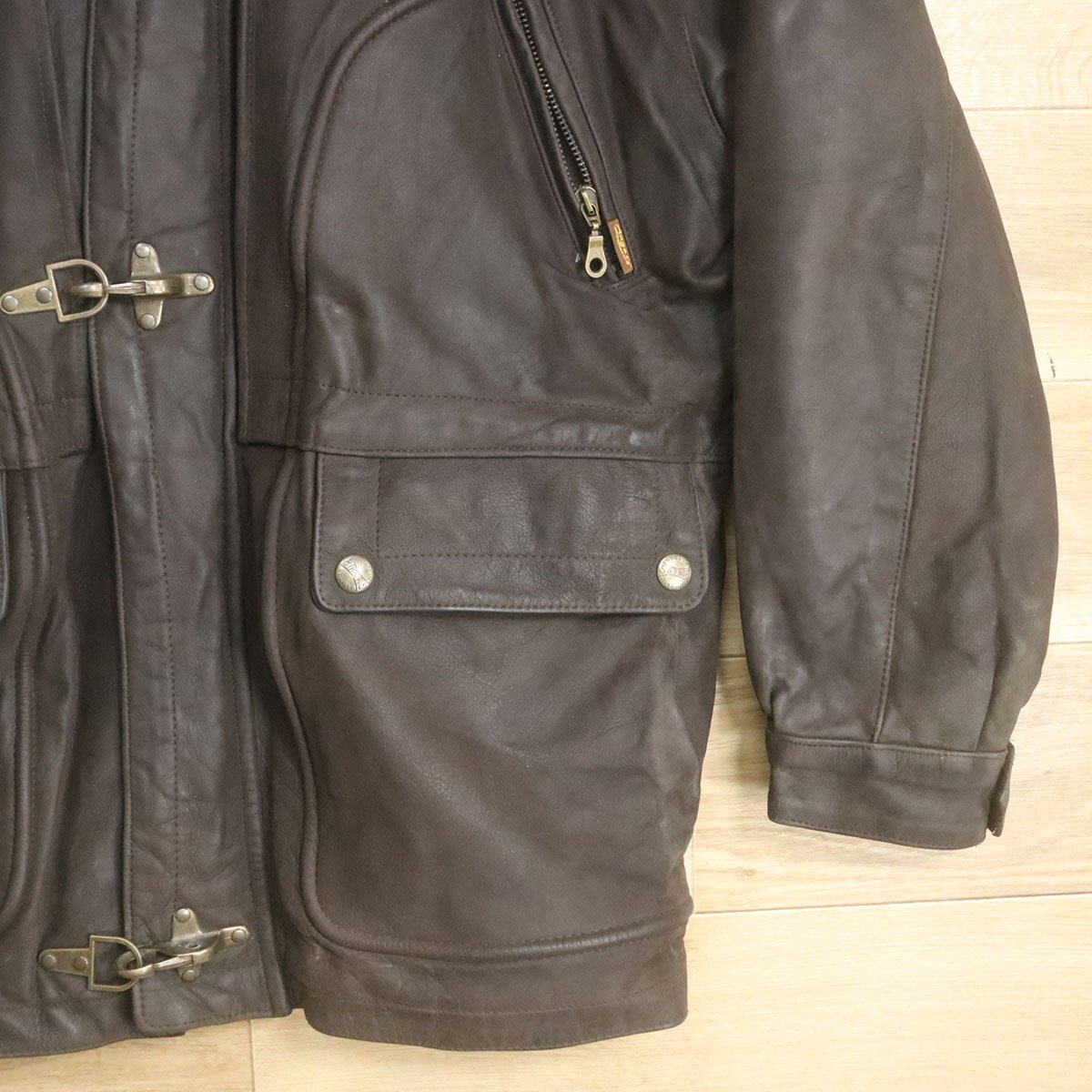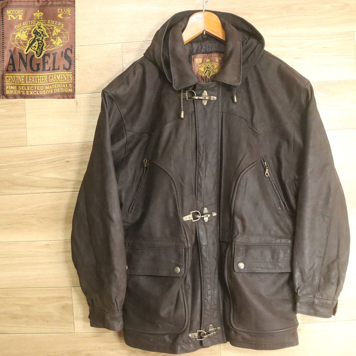 B15S/S6.10-2 フランス製 ANGEL'S ファイヤーマンジャケット 本革 レザージャケット フード付き バイカージャケット M メンズ