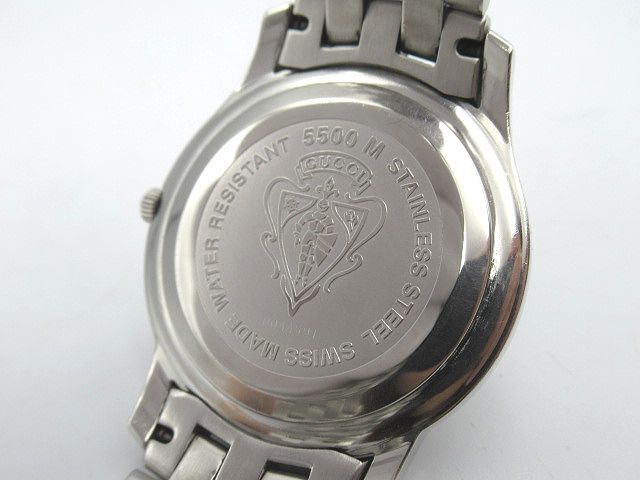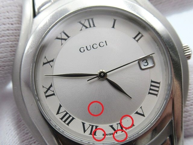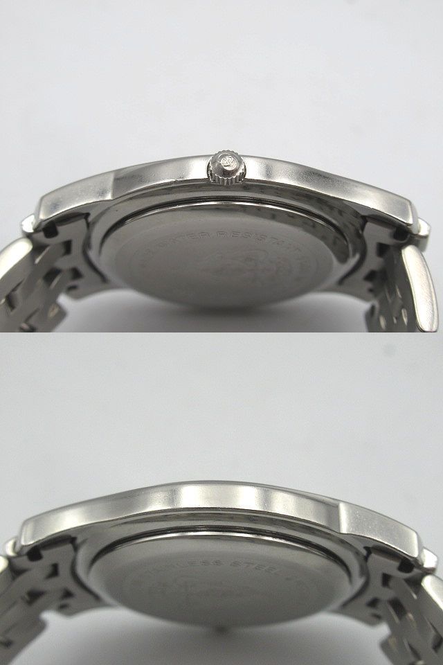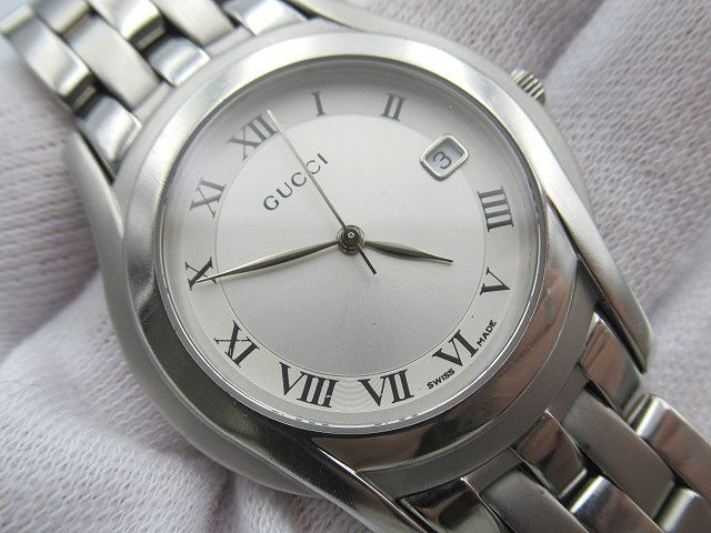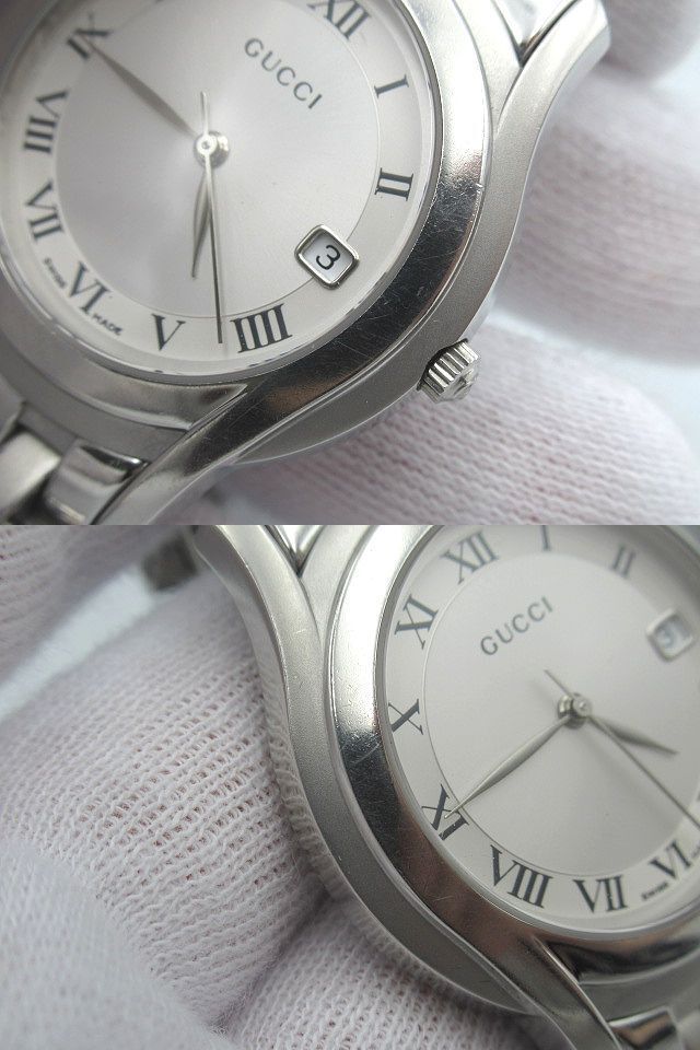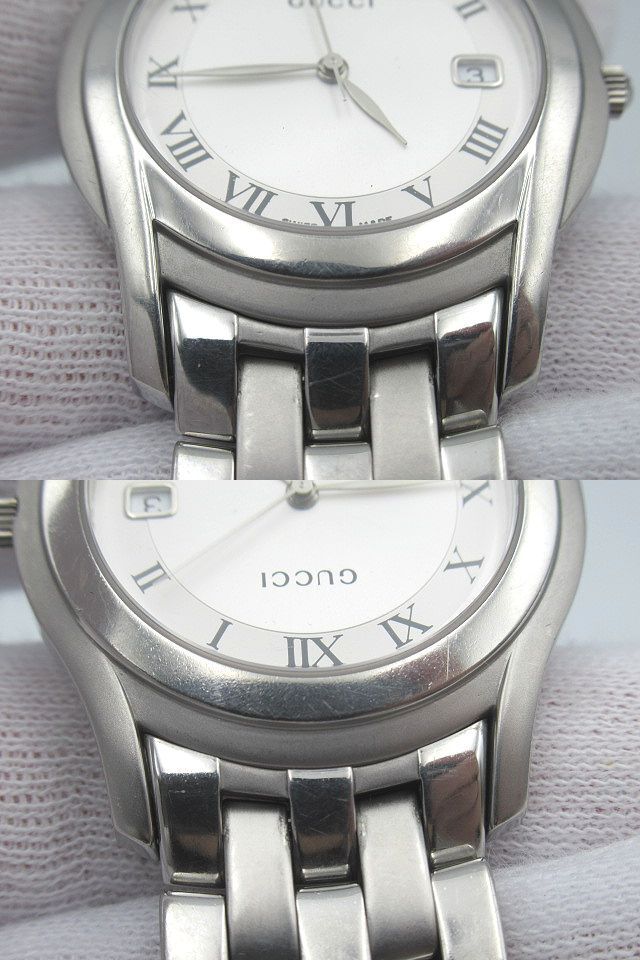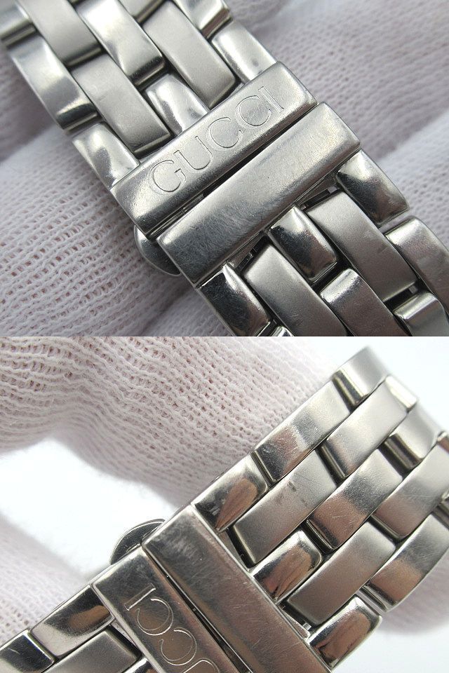 | ◇GUCCI◇グッチ◇ デイト クォーツ QZ シルバー/ローマン文字盤 5500M 現状稼働品 メンズ 腕時計 中古 管理番号:2245/S3 *付属品* 無し ※画像に無いものはお付けしません。 *サイズ(約)* ・ケース 縦 4.2cm×横 3.4cm(リューズ含まず) ・文字盤 直径 2.5cm ・ラグ幅 1.8cm ・腕周り 15.5cm ※素人採寸の為、誤差有。 【状態】 店舗買取品/保管品/中古になります。 1時間程度の短時間の動作確認ではありますが、 分単位での大きな時間のズレは見受けられません。 日付が23時59分辺りで切り替わります。 現状渡しとなりますので、落札者様負担での メンテナンス・修理が可能な方のみご入札をお願い致します。 傷・擦れ・落としきれない細かな汚れ・擦れ傷によるくすみ・ 風防に小傷・文字盤内に塵の入り込み・バックル部分に変色・ その他ダメージがあります。 詳しい状態は写真でご確認下さい。 ※商品の状態の説明はあくまで出品者の主観に基づいた説明です。 ※店舗保管品です。 ※新品の様な完璧な状態では御座いません。 ※ご理解頂ける方のご入札をお願い致します。 ご入札前に必ず全文をお読みになり、 お客様が十分にご納得された上でのご入札、 ノークレーム・ノーリターンでお願い致します。 入札の取消は行っておりませんのでご注意下さい。 (ご入札された時点で同意頂いたものとします) ※画像のものがすべてになります。 ※店舗保管品の為、多少のスレキズ等ある場合が御座います。 ※専門知識が無いため質問にお答えできない場合が御座います。 ※素人検品・撮影の為写真に写り切らない汚れ・キズがある場合が御座います。 ※新品の様な100%完璧な状態では御座いません。 ※念入りに検品しておりますが見落としがある場合が御座います。 ※神経質な方、完璧をお求めの方は入札をお控え下さい。 ※御理解頂ける方のご入札をお願い致します。 ※当店はまとめてお取引には対応致しません。 全て単品でのお取引となります。 ※同梱は行っておりません。 ※商品管理上、取り置きは致しませんのでご了承下さい。 | |||