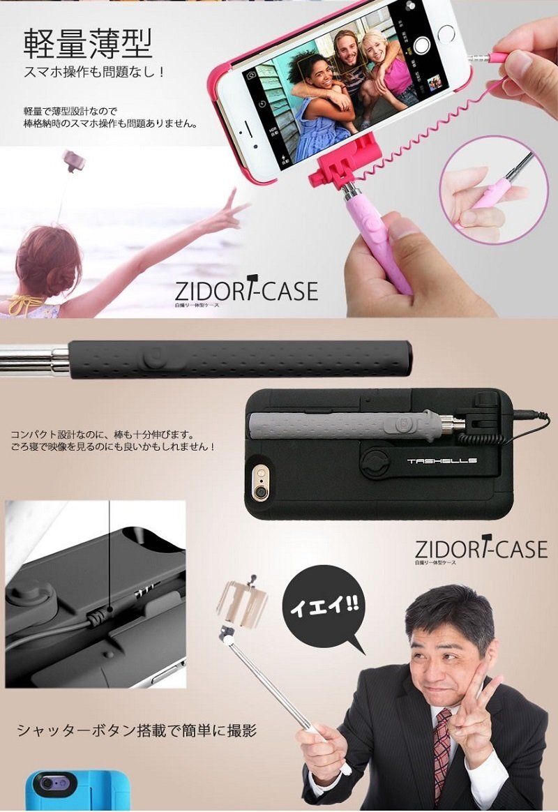 | iPhone6Plus/iPhone6sPlus用 自撮り棒一体型ケース ブラック |