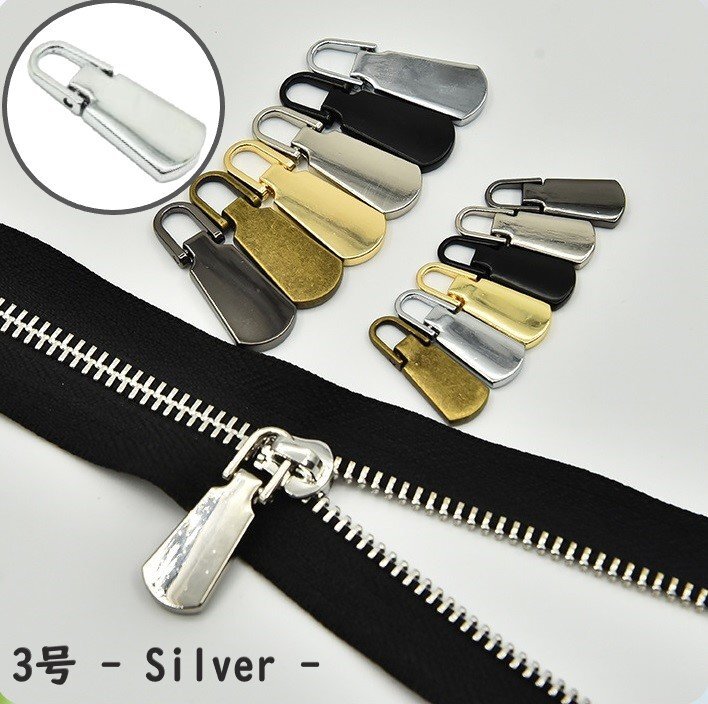 ファスナー 3号 シルバー チャック 引手 引き手 持ち手 取っ手 ジッパー プルタブ ファスナートップ 修理 交換 取替 金属金具 財布 a522