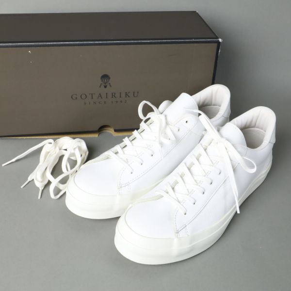 ** ブランド:gotairiku / 五大陸 ** 素材:[甲材]牛革[底材]ゴム底 ** 状態: 新品 未使用 ** 色:ホワイト ** 表示サイズ:26.5 ** 実寸サイズ(単位cm) ※多少の誤差はご了承ください: 長さ29横幅9.3高さ10ヒール3 ** 仕様: 替え紐付き。日本製(MADE IN JAPAN) ** 定価:26,400円 ** 品番: SE1AIM0404 ** 商品説明: 「ジャパニーズ・ジェントルマン・スタンダード」 を提唱するブランド、五大陸。 福岡・久留米に本社を構える〈moonstar〉との特別コラボによって誕生した五大陸のレザースニーカー。 上質な天然皮革を使用し、柔らかな履き心地とスマートなシルエットを両立しています。 アイレットを1つ多く設けたことで、よりエレガントな印象に。 無駄のないデザインが魅力で、セットアップやジャケットスタイルにも映える万能な一足です。 日本製ならではの丁寧な仕上がりをぜひお試しください。 836-ws-WN-[ewyy-e]" ◆ その他: ・オークション出品のため、キャンセルや 返品は お受け出来ないことをご了承ください。 もし、 どうしても返品をご希望される場合は、 落札に より発生する落札手数料および送料を ご負担 ください。 (※未使用の場合に限ります) ・まれにヤフオク出品の際の撮影中や保管中 に自然についた微スレ、微キズ程度が 生じる 場合があることをご了承ください。 (事前に生じたダメージ等については、 必ず 説明文中に記載するようにしております) ご不明な点はご入札前にご質問ください。 | ||
