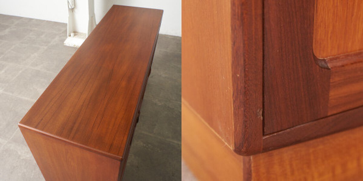 約50年前に英国で一世を風靡したG-PLANの中でも最も売れたシリーズと言われている「フレスコシリーズ」1960年のDanishシリーズに続き、発表当初のデザインは Ib Kofod-Larsenが手がけ、後にWilkins Victor Bramwellが引き継ぎました。チーク材などを用いた北欧色の強いデザインとなっており、現代においてもGプランを象徴する最も人気の高いシリーズです。