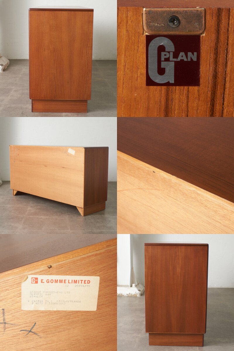 1898年創業の英国ハイ・ウィカムという町の「Ebenezer Gomme(エベネゼル・グーム)」社により 1952年に打ち出された家具ブランドです。1950年代の北欧家具ブームをイギリスで最初に取り込み1960年台にはロンドンの都市生活者の象徴と言われるほどの人気を集めました。「G」とはグーム社の頭文字、「PLAN」とはプランニング=「ライフスタイルを計画する」という商品コンセプトは単品はもちろんのこと、少しずつ買い揃えることによりトータルにモダンな部屋づくりが楽しめるという、当時としては画期的な発想でした。1987年には会社が売却され、紆余曲折を経てイングランド西部にある「G Plan Upholstery」がソファ類を、スコットランドにある「G Plan Cabinets」がキャビネットの製造を続けています。