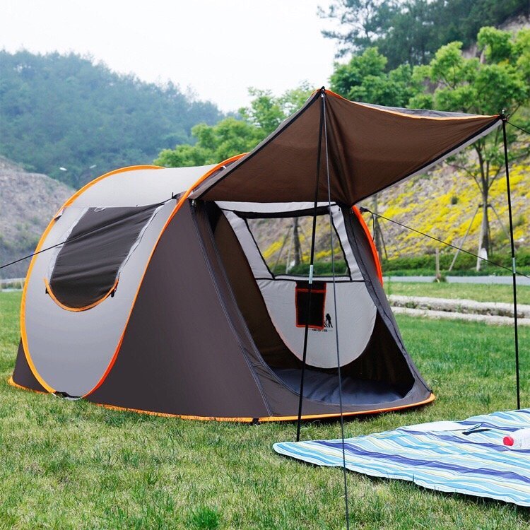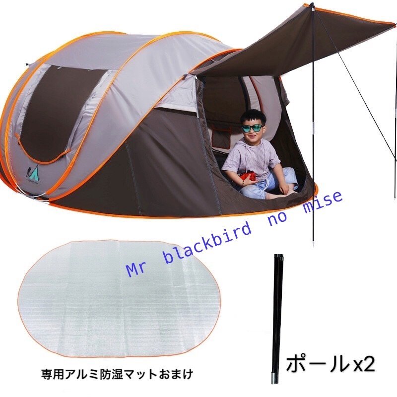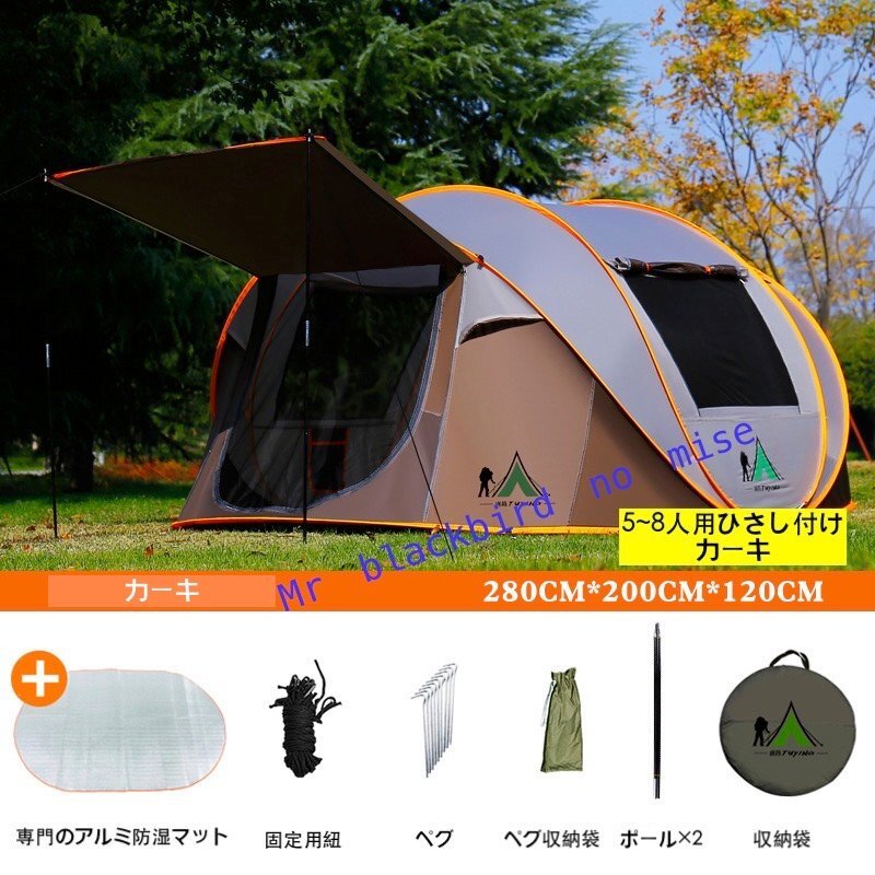 5-8人用 テント ポップアップ アウトドア キャンプ 投げるだけで簡単設置 ドーム型 ワンタッチテント ビッグテント カーキ ひさし付け