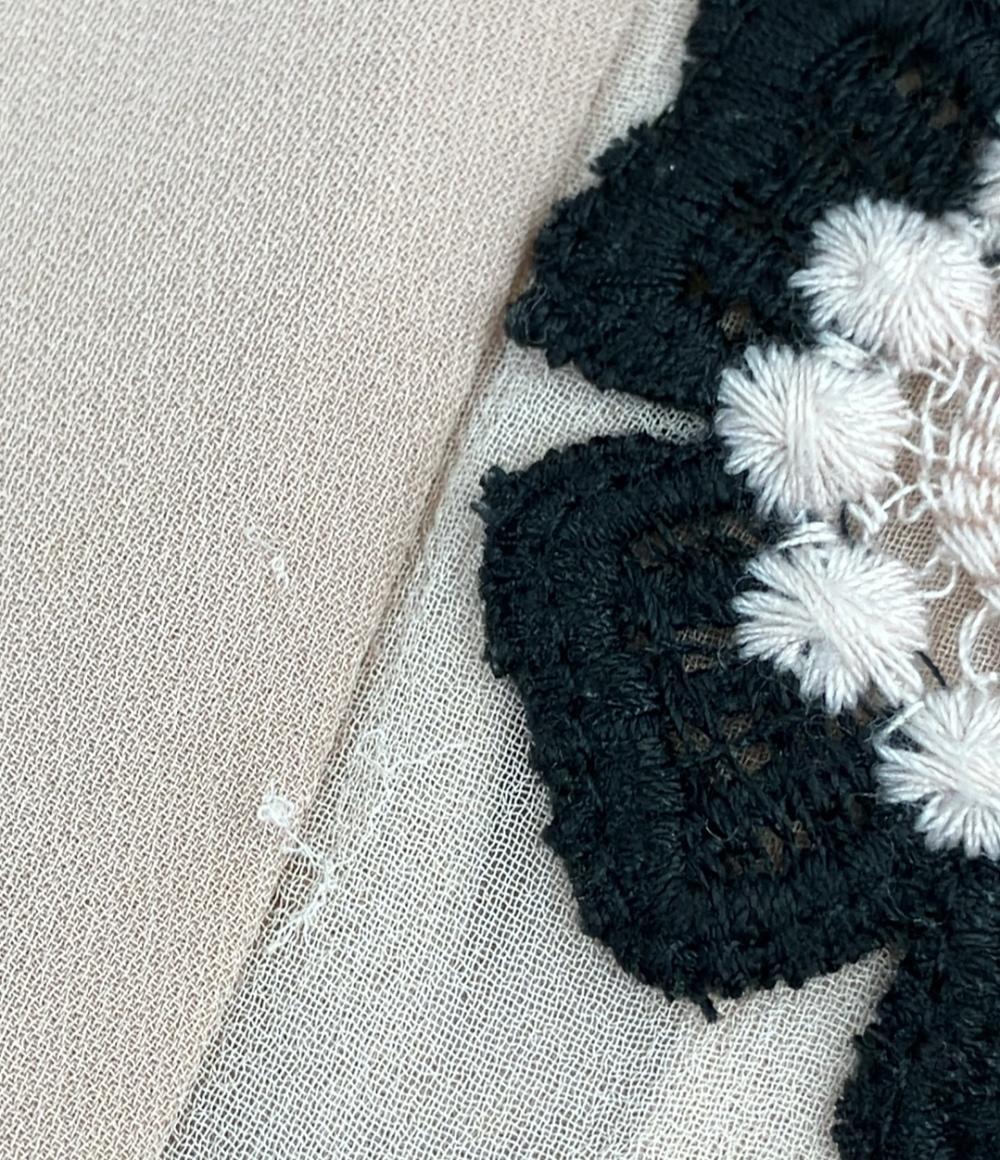 | ・全体的:シワ ・前身頃 後身頃 左袖:糸引き ・肩 首回り 右袖 袖口:シミ |