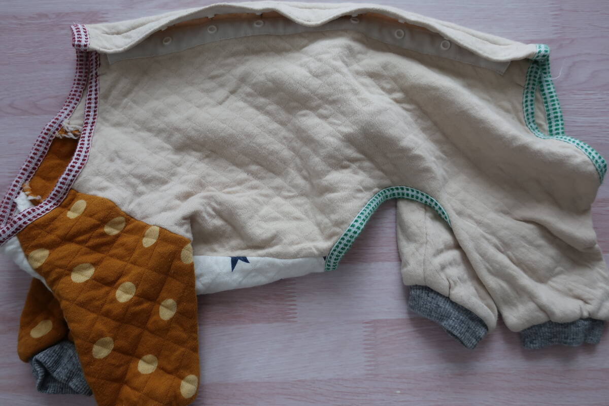 【中古・カバーオール】 小型犬用 ベージュ系 秋冬 犬服 ドッグウエア ハンドメイド