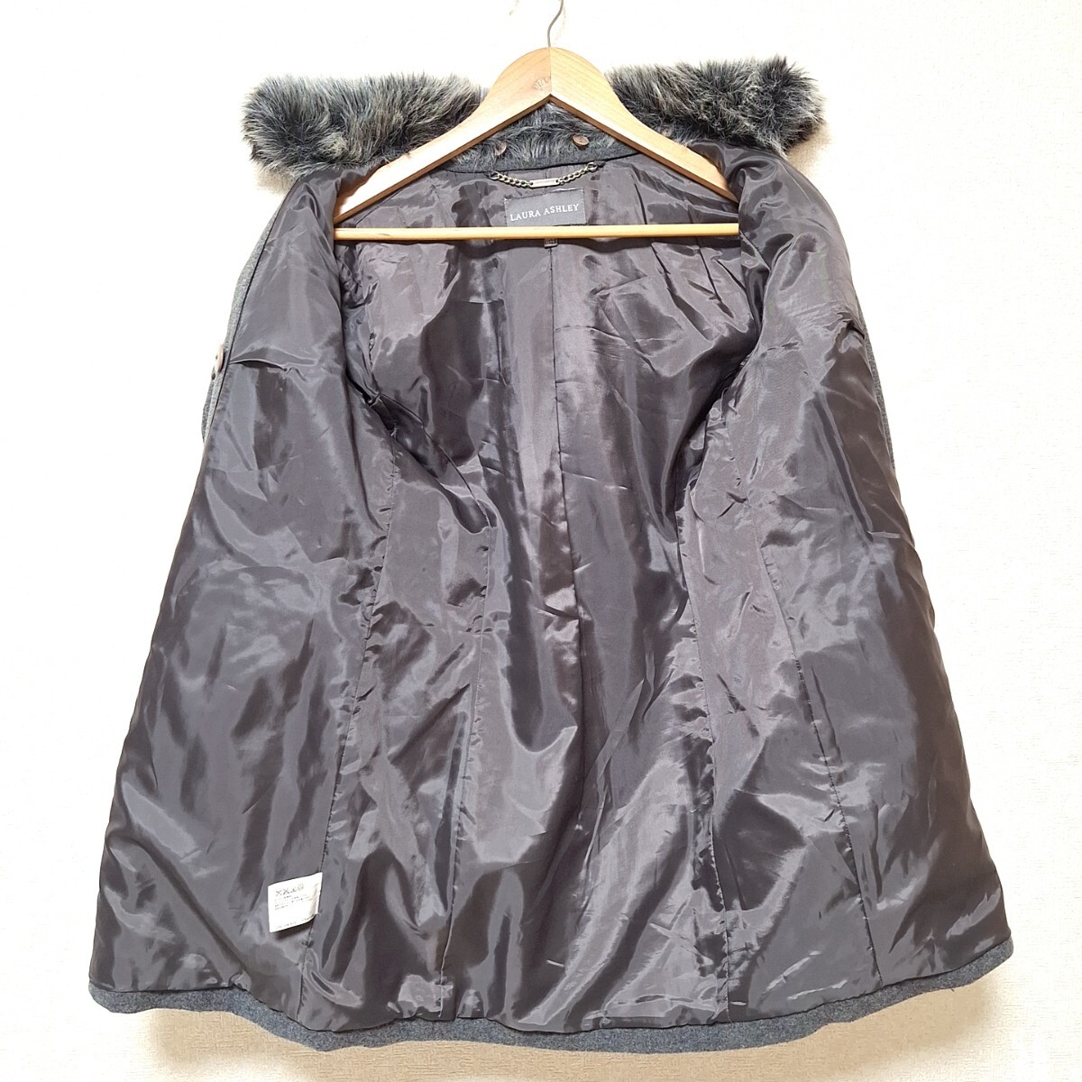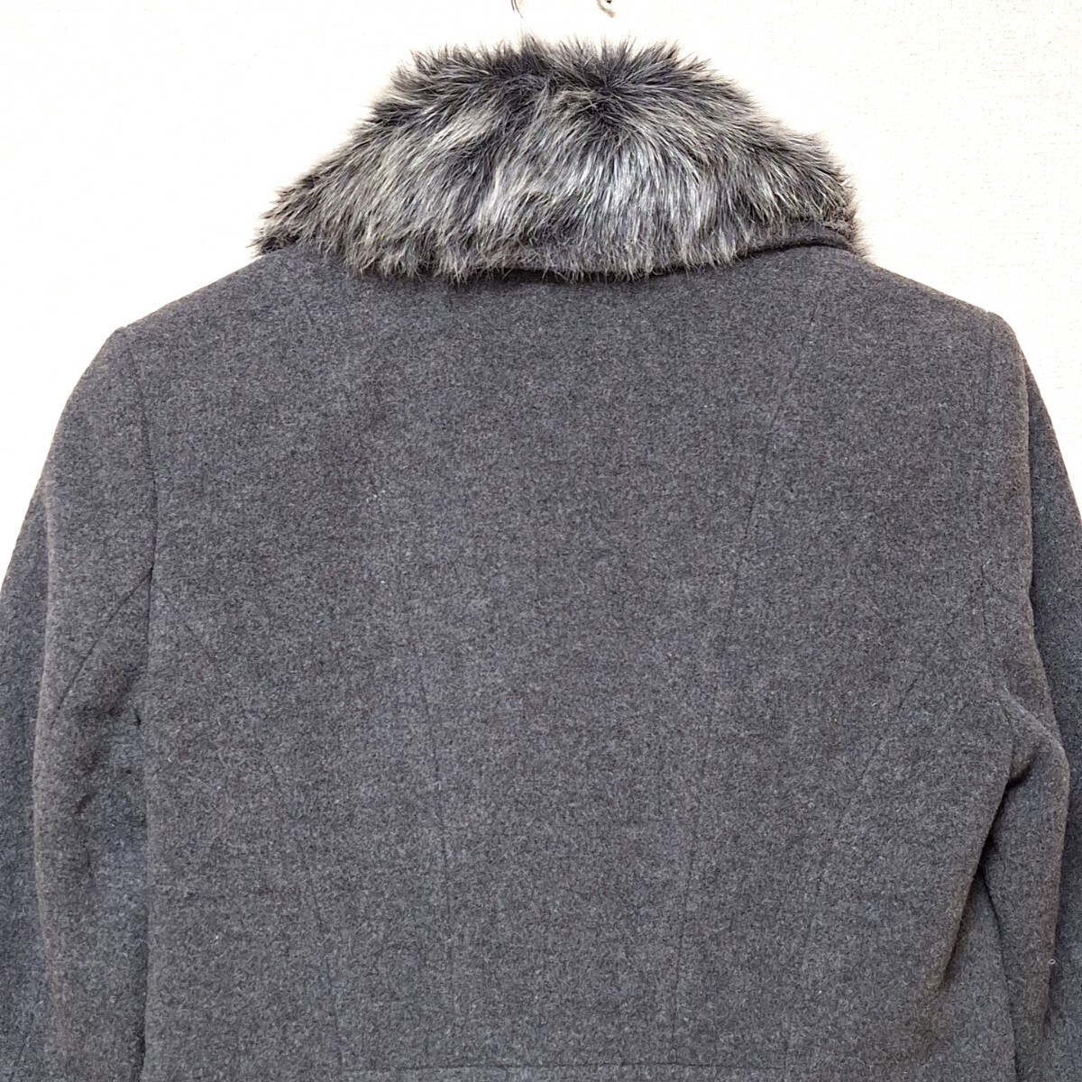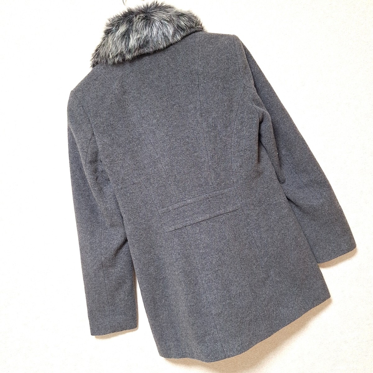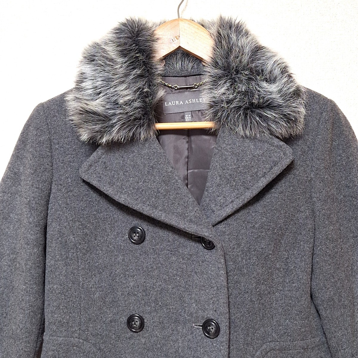 W1101【LAURA ASHLEY】ローラアシュレイ ダブルボタンコート アウター ファー ナイロン混 きれいめ ダークグレー レディース 6(M位)/ee