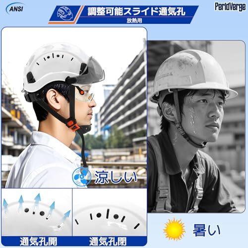白いヘルメット PerldVerge 建設用ヘルメット 安全ヘルメット 工事現場 ヘルメット クリアバイザー付き 防護帽 ABS