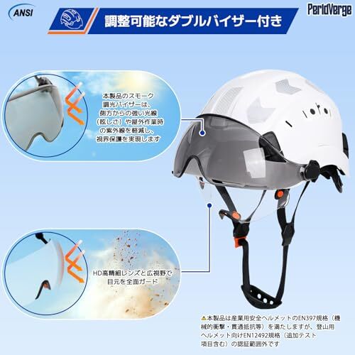 PerldVerge 建設用ヘルメット 安全ヘルメット 工事現場 ヘルメット クリアバイザー付き 防護帽 ABS 夜間安全性 EN397規格準拠
