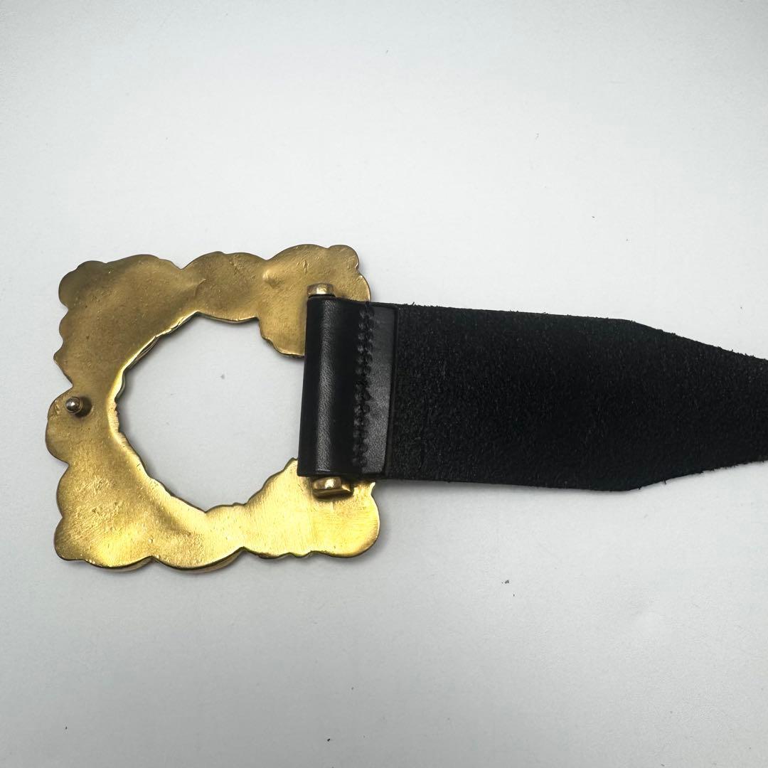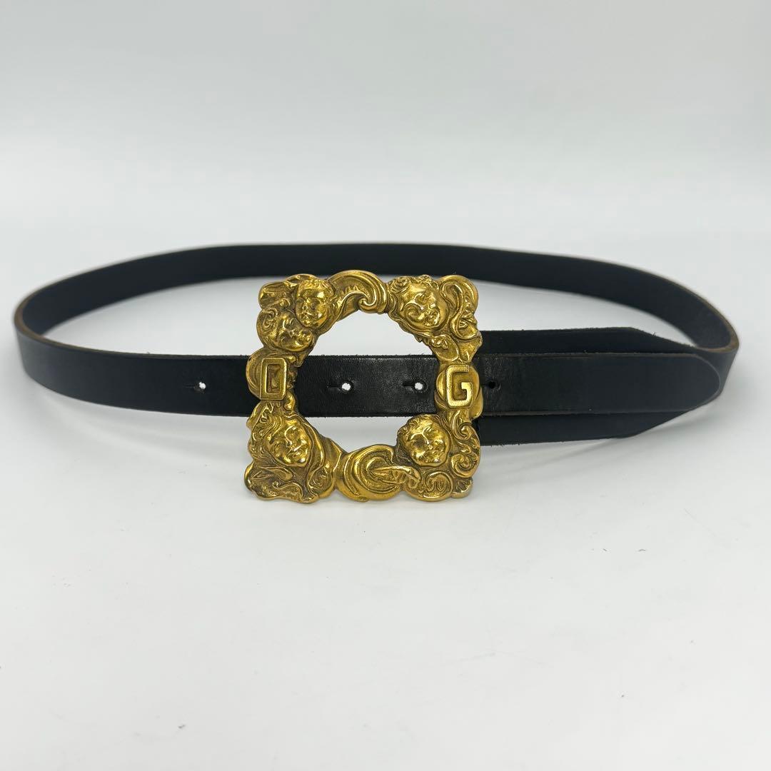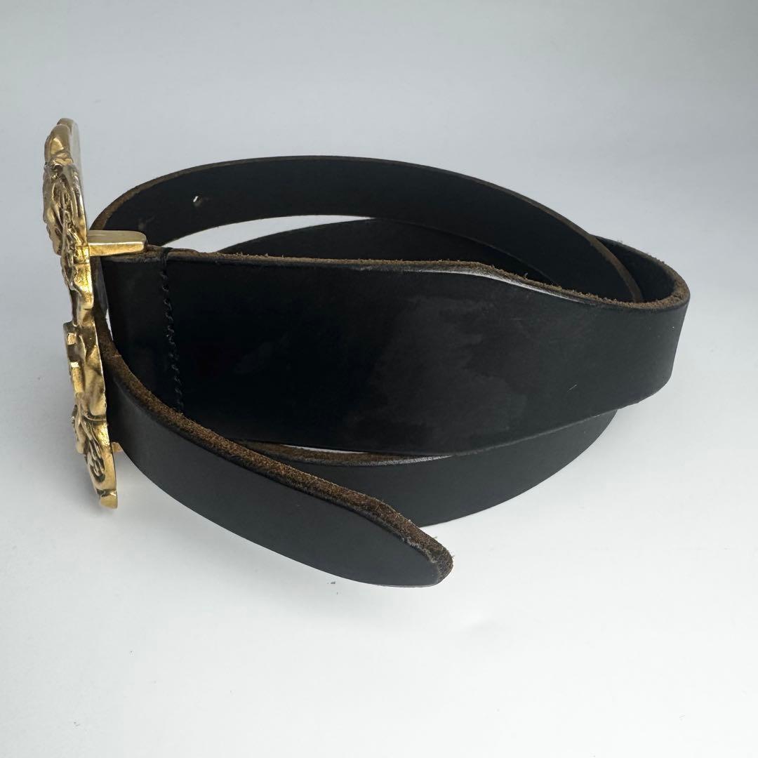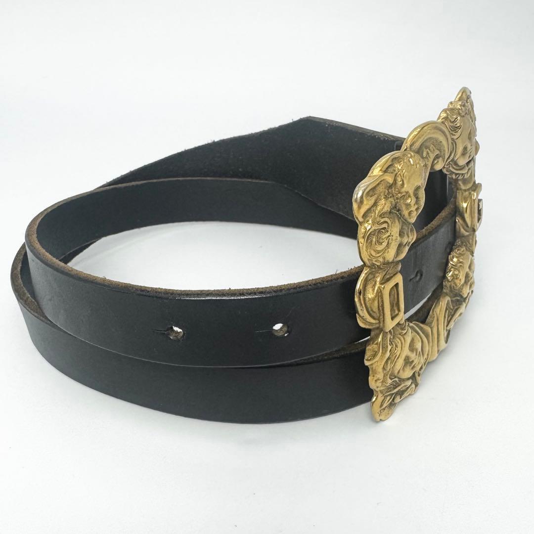 主役級の重厚なバロック調ゴールドバックルが映え、デニムはもちろん、ジャケットスタイルの“仕上げ”にも活躍します。