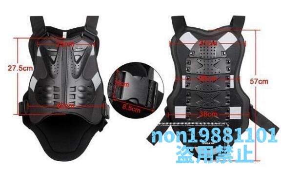 ●商品未使用 ■表生地には丈夫で耐久性の高い素材生地を使用。 ■軽く装着しやすいプロテクターで、オールシーズンの着用が可能! ■アジャスター付が付いてありますので、状況やニーズに合わせ身幅を調整することができる! ■保護力、耐久性共に抜群! 「素材 」:ポリエチレン、ポリエステル 「サイズ」: フリーサイズ 「仕様」:反射素材を施し、 夜間走行時の安心感を高めます 「重さ」: 約680G 発送詳細 ●海外輸入品です。