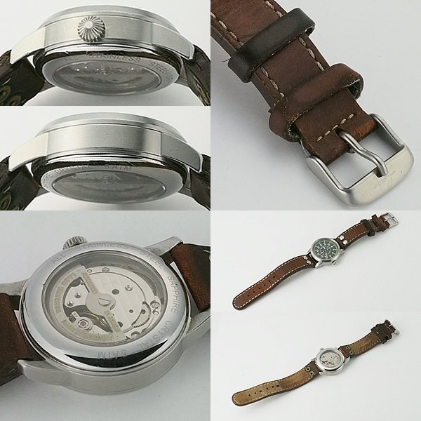 備考:日差が-7?-27秒程度あるため、実際にご使用になる際には、定期的に時間を調整するか、オーバーホール等を行う必要があります。十分にご理解の上、ご入札ください。風防にスレ、ベゼルやリューズに傷が見られますが、お着けになられて目立つような傷はございません。ベルトに汚れ等の劣化や使用感が見られるため、画像にてご確認ください。