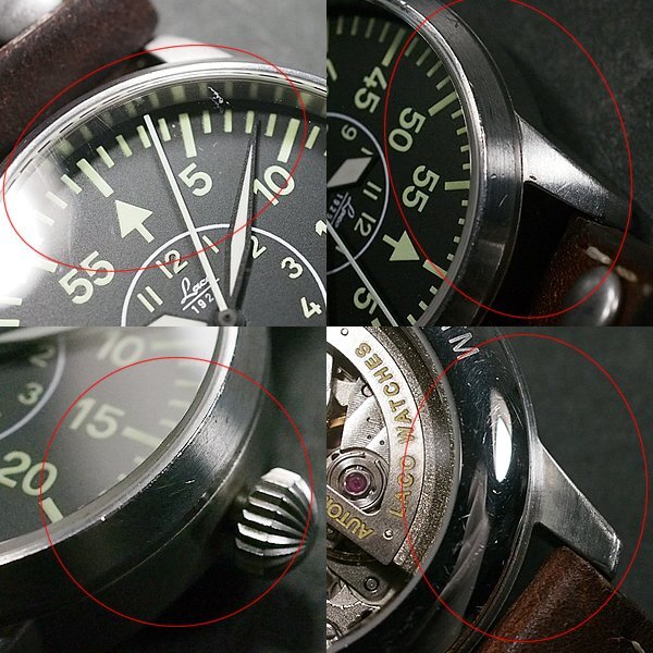 富士屋◆1円スタート◆ラコ Laco アーヘン39 861990 パイロットウォッチ 裏スケ シースルーバック メンズ 自動巻き 腕時計