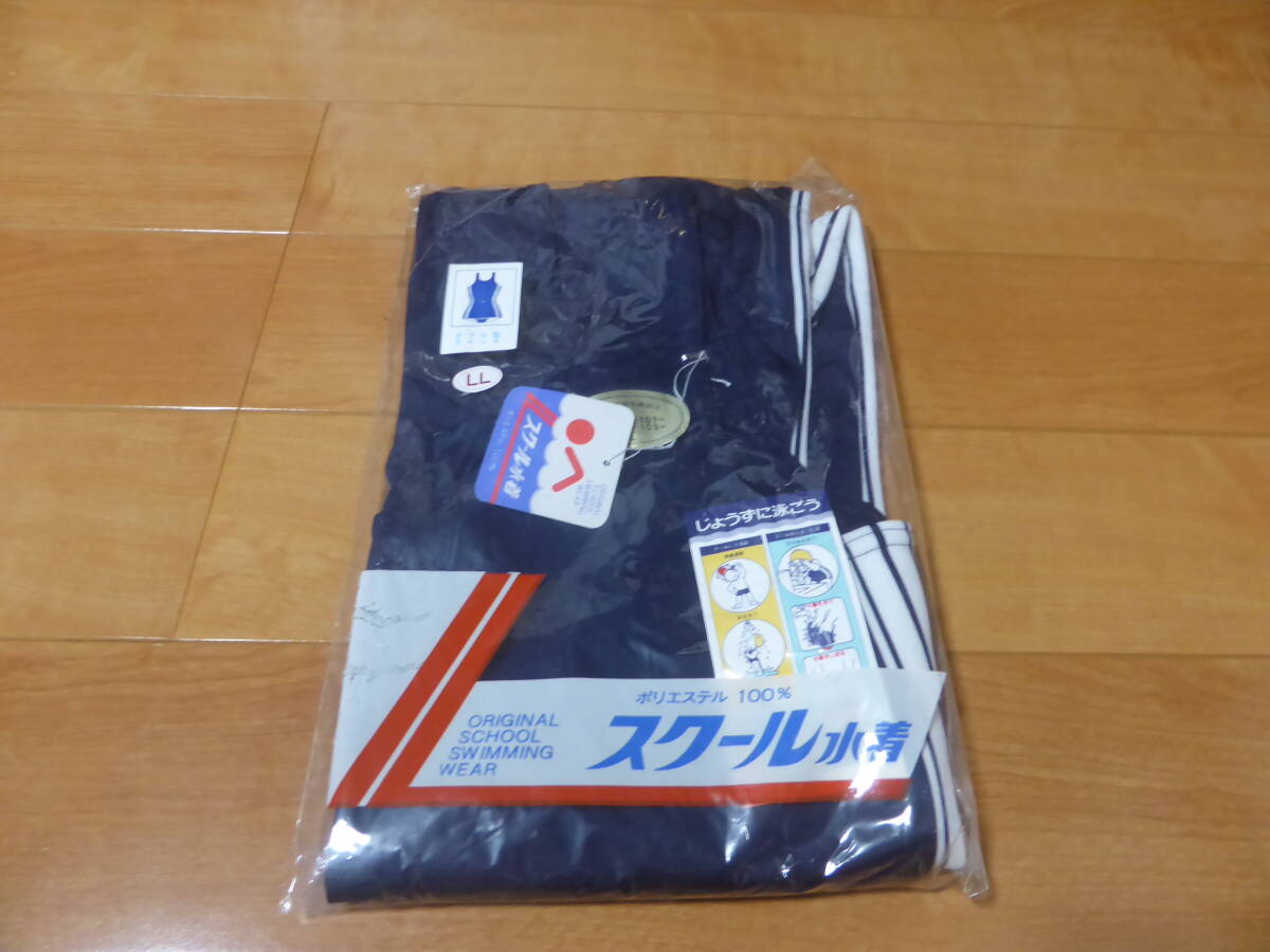 未使用★スクール水着 旧型 ポリエステル100% LL ライン入り LLサイズ 日本製 紺色 当時物★