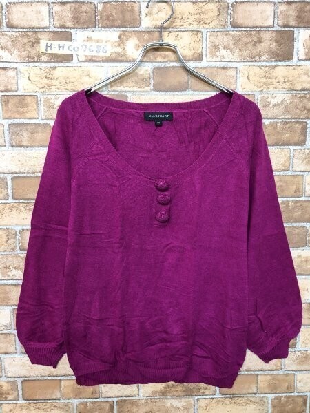 JILLSTUART ジルスチュアート レディース ポンポンモチーフ 薄手 ニットソー M 赤紫 レーヨン他