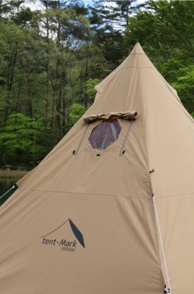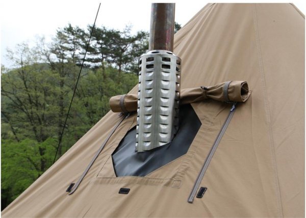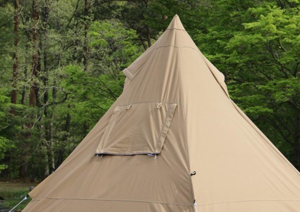 もちろん、夏場は「木陰のように涼しい」遮光性の高さを発揮し、2箇所の出入り口で風通しも抜群です。薪ストーブを使わない時期は、煙突穴を付属のクリア窓に交換でき、採光窓として機能します。一年中活躍できる万能テントです。