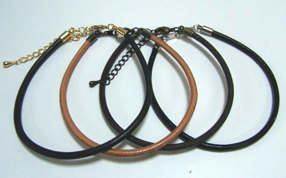 丸革紐を金具で留めるシンプルなブレスレットです。そのままはもちろん、お好きなトップやモチーフなどを付たり、何本も重ねづけしたりとアレンジしてお使いいただけます。