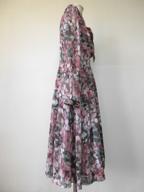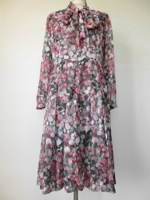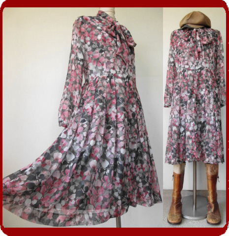 ♪古着レトロ・Vintageピンク花柄ボウタイワンピ♪