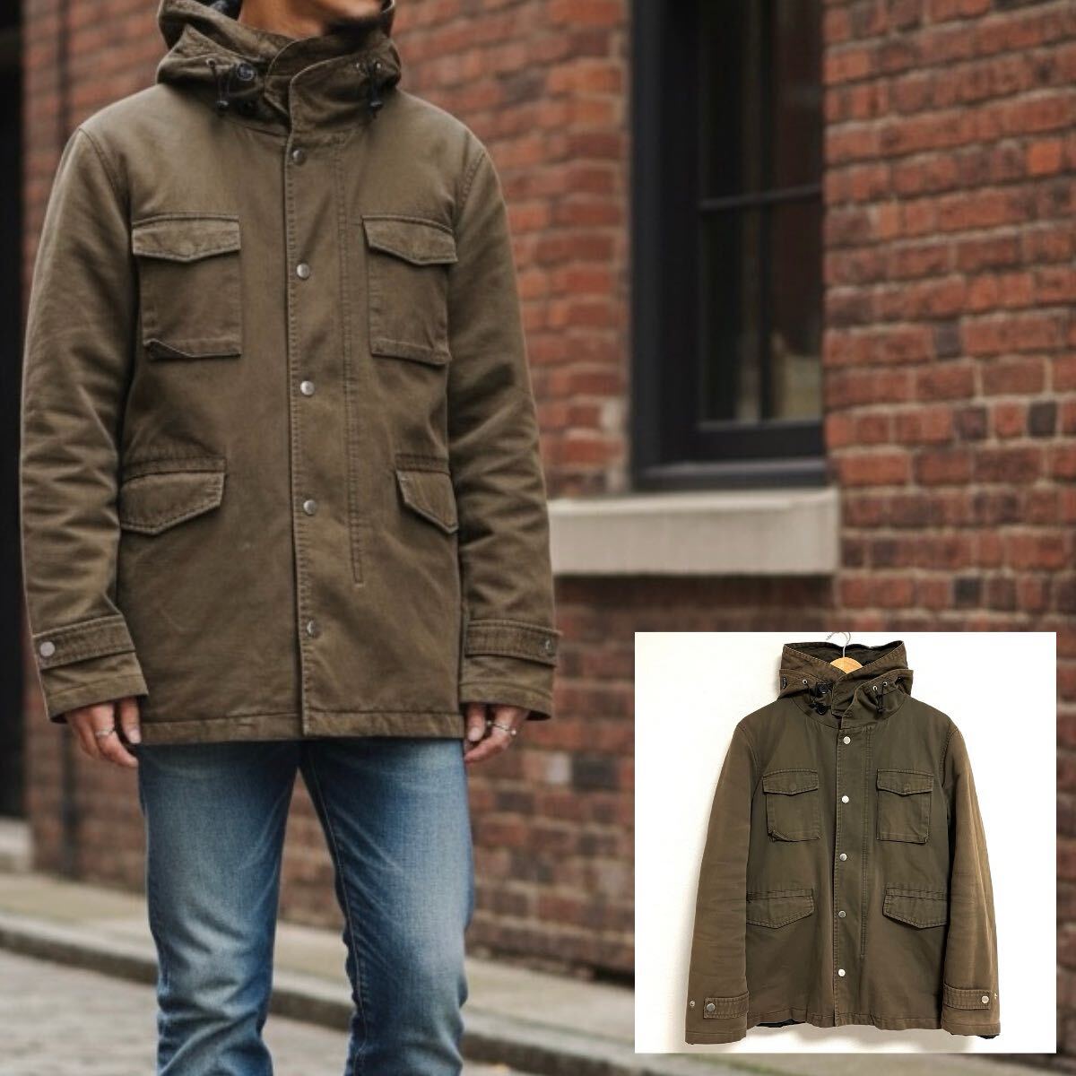 この度は私の商品をご覧頂きありがとうございます。頻繁に商品出品致しますのでフォロー頂けたら嬉しいです。 サイズ: 2 (Mサイズ位) 平置き時: 肩幅48㎝、着丈70㎝、身幅52㎝、袖丈61㎝。 ※素人採寸考慮 J.N.R.D のミリタリージャケットです。中綿入りで暖かく、デザインも風合いも雰囲気抜群◎フードは取り外せるライナー付きです。所々に色あせや色ムラ、フードの紐に伸びがございますが、良い味としてお楽しみいただけると思います。 他にも沢山出品しておりますので下のマイオークションからチェックしてみてください!当方の商品はすべて一点ものですので買わなければもう手に入りません!完全売切り!この機会がラストチャンス! 【注意】 発送方法は発送時トラブル防止の為、 【飛脚宅配便 100サイズ 2kg】 発送のみです。福島県から発送致します。正確な送料は佐川急便HPから確認ください。離島、沖縄は除く。 商品管理上、当方商品すべて出品後包装済みの為、其々の発送となりますので他の商品との同梱不可をご注意ください。