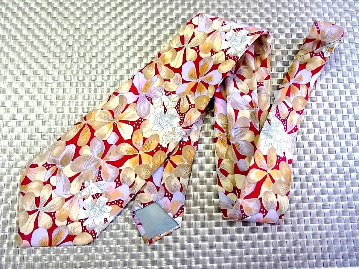 ☆40786D☆状態並品【花 植物 柄】手づくりネクタイ ルポール ネクタイ