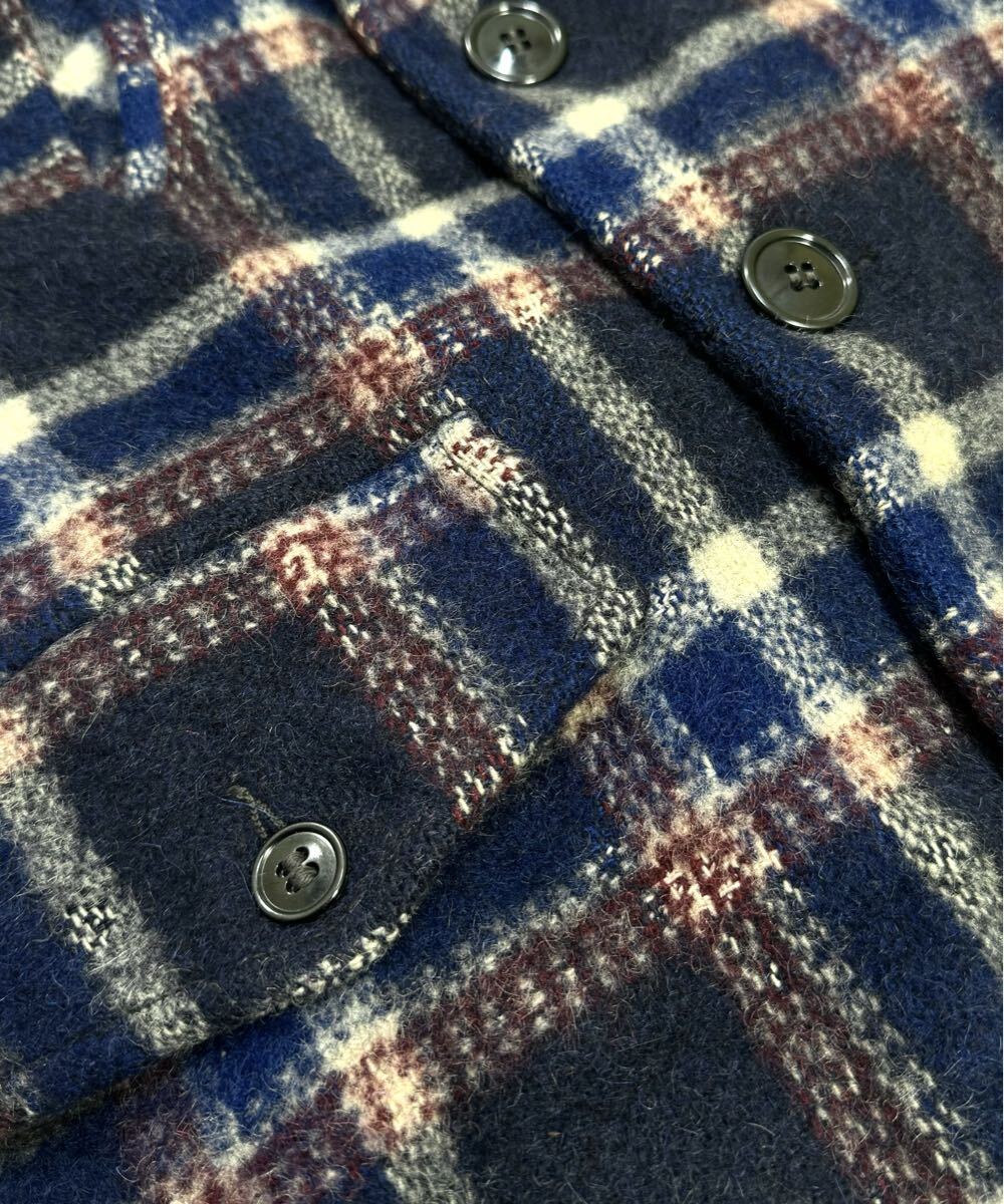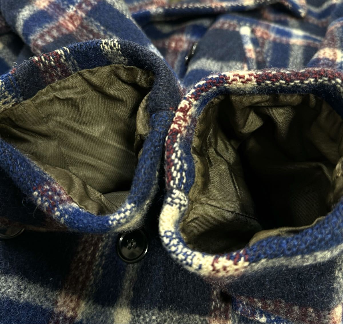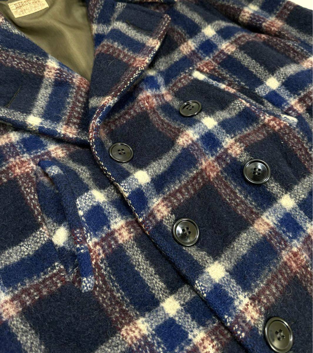 表面起毛生地に複数カ所の小さな傷、裏地にシミ、複数点のピンホール、右脇の下の裏地にリペアがございます。写真を見ていただいてもわかると思いますが、いずれもほとんど気にならない程度の状態です。