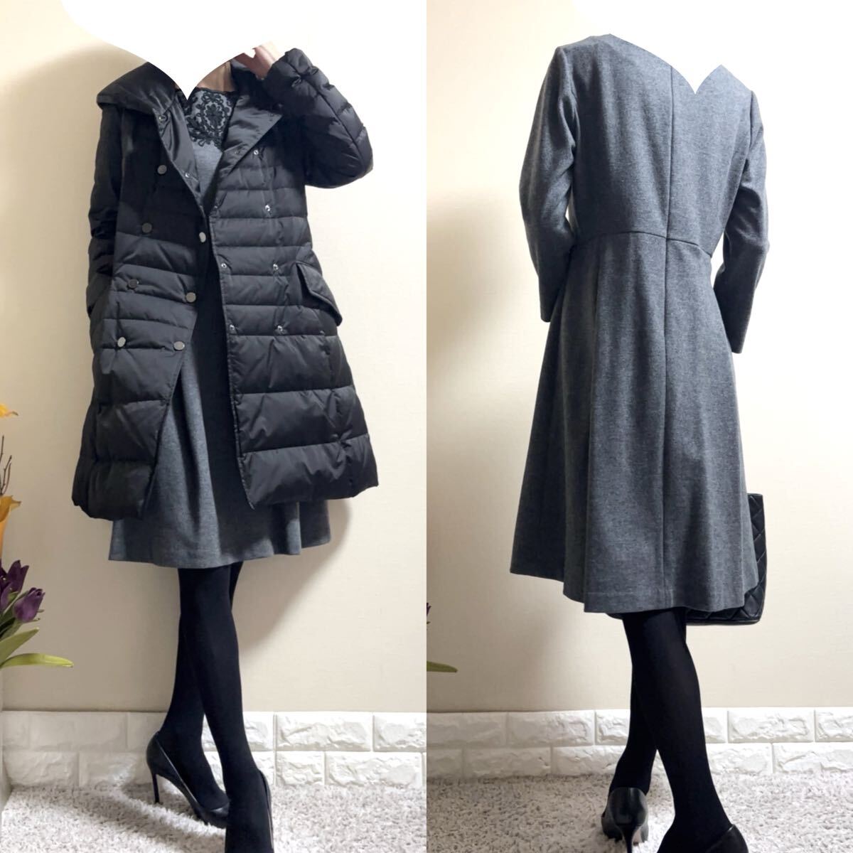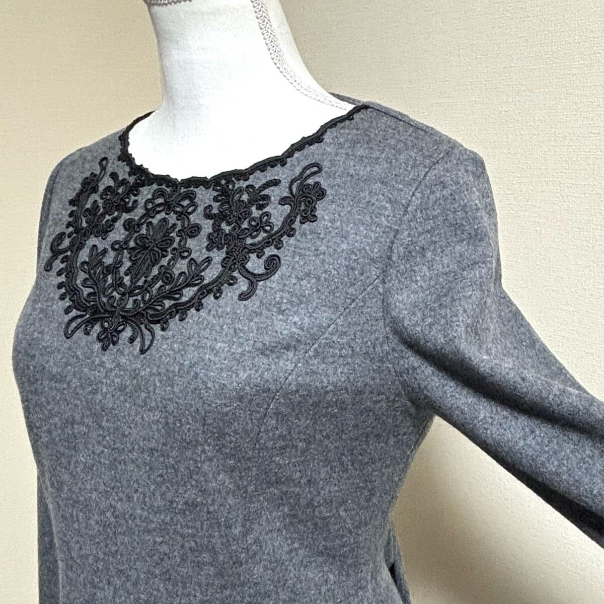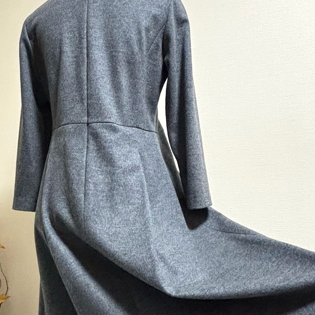 ハイゲージのウール100%フェルト状の表面感に締まりを持たせた圧縮ウールジャージ生地使用。ウールならではの暖かみのある風合いが特徴で柔らかいのに綺麗なフォルムが実現できる上質ワンピースです♪