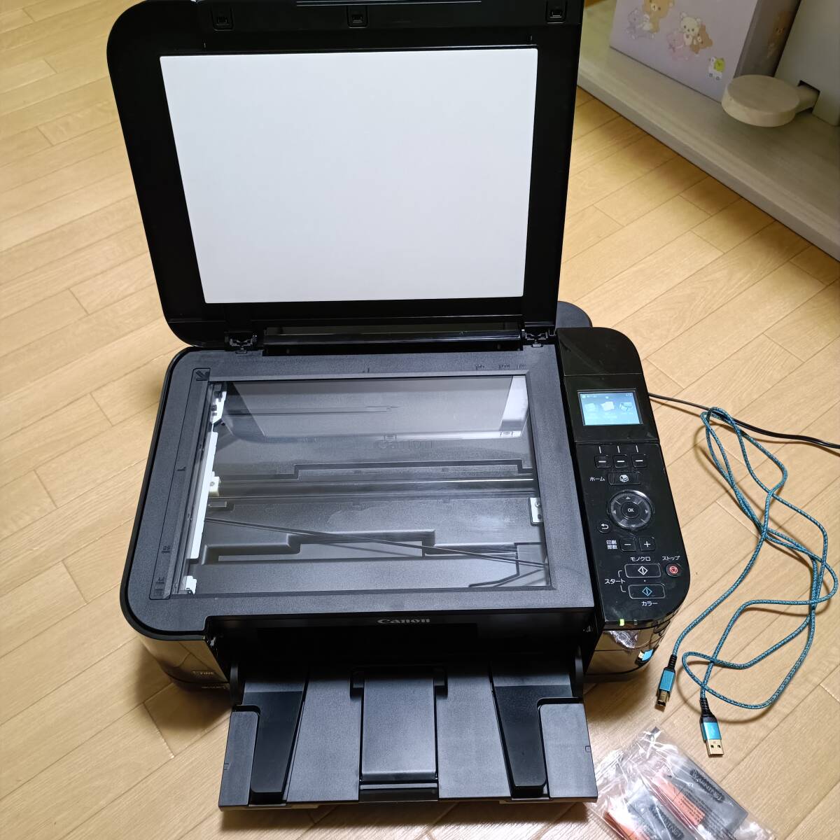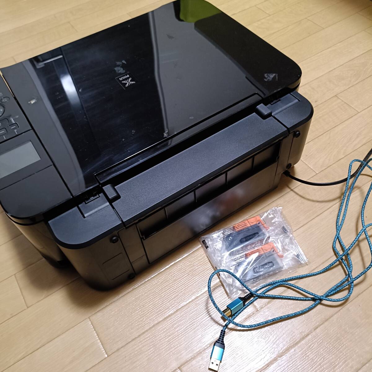未使用のインク(BLACK×2点)をお付けいたします。また、純正品ではございませんがUSBケーブルも同封させていただきます。