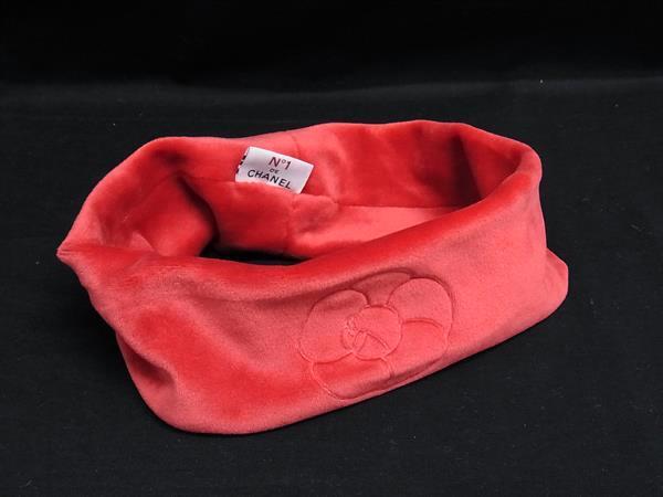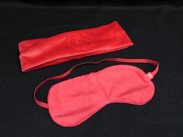 ■極美品■ CHANEL シャネル カメリア ポリエステル100% アイマスク ヘヤーバンド アクセサリー 2点セット レッド系 DK1981